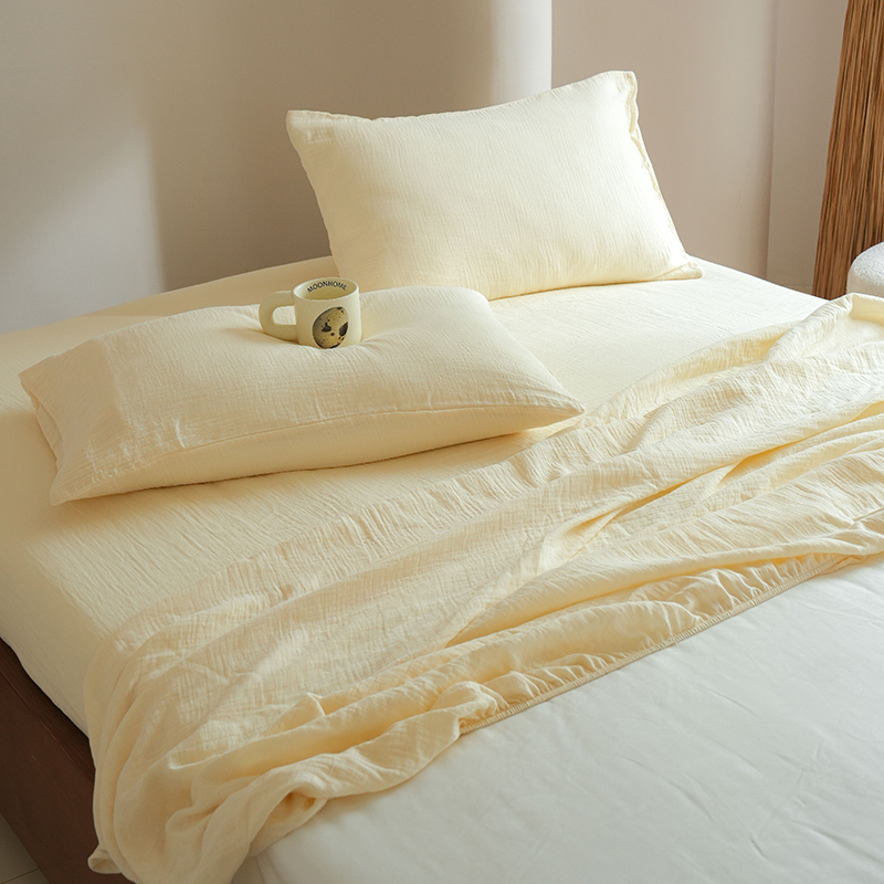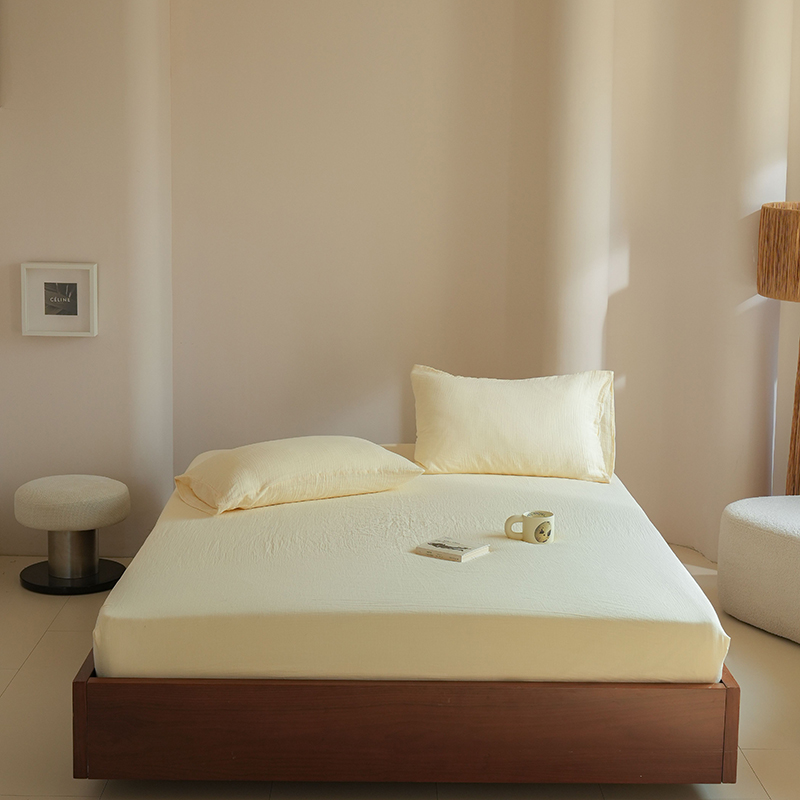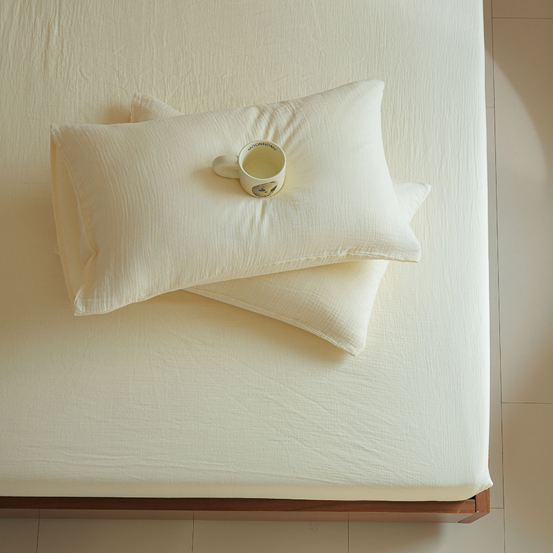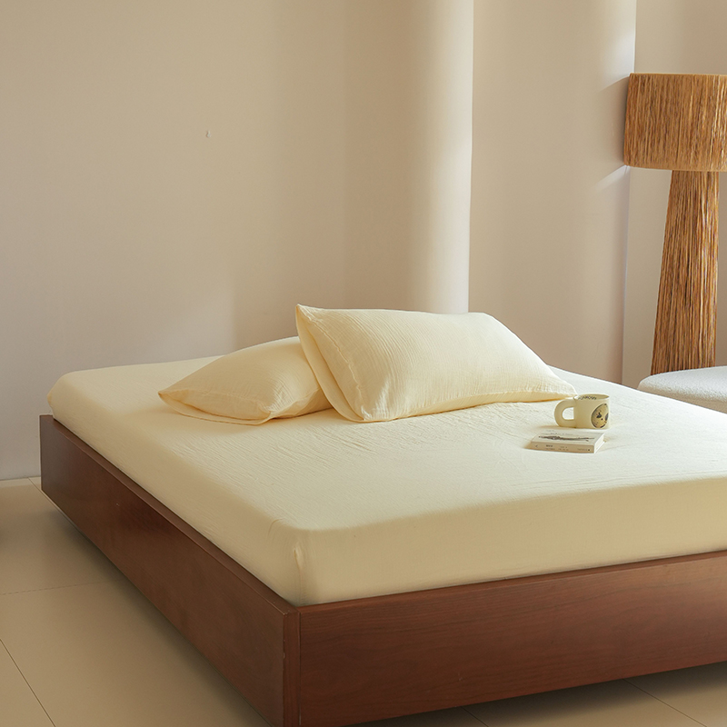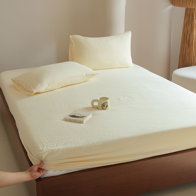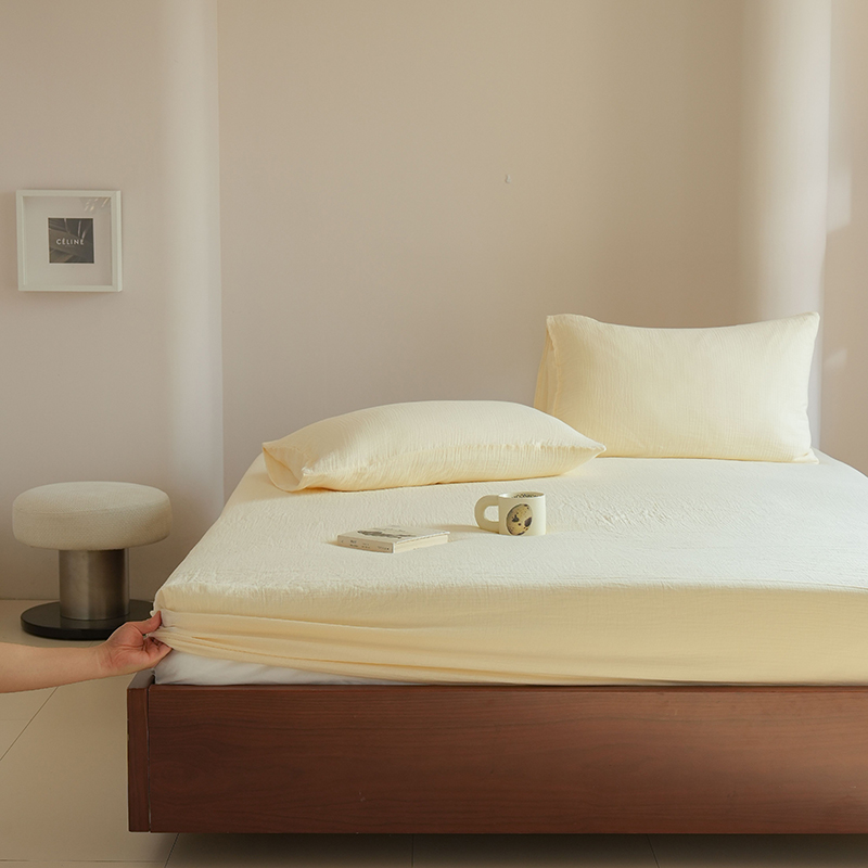 简纯主义 2025新款全棉有机雾感纱双层皱皱纱系列单床笠奶酪