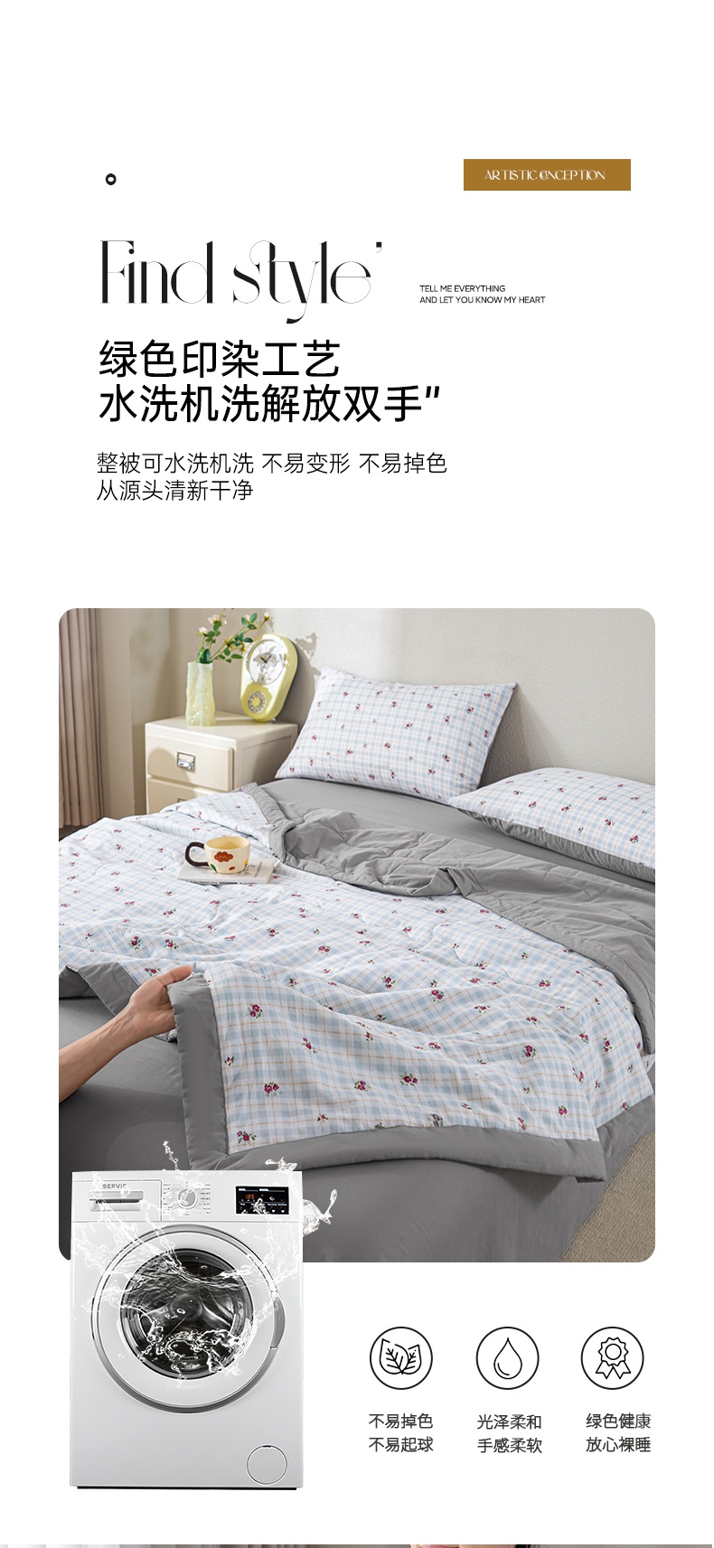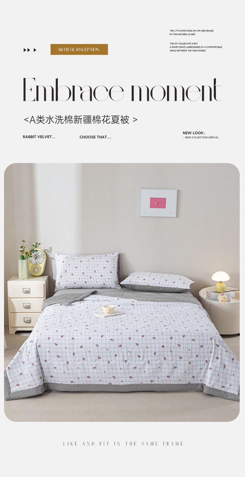 • 91家纺网 家纺一手货源 找家纺 慕木家纺 2025新款A类水洗棉印花新疆棉花夏被空调被(抽空压缩可供跨境) 樱桃格韵