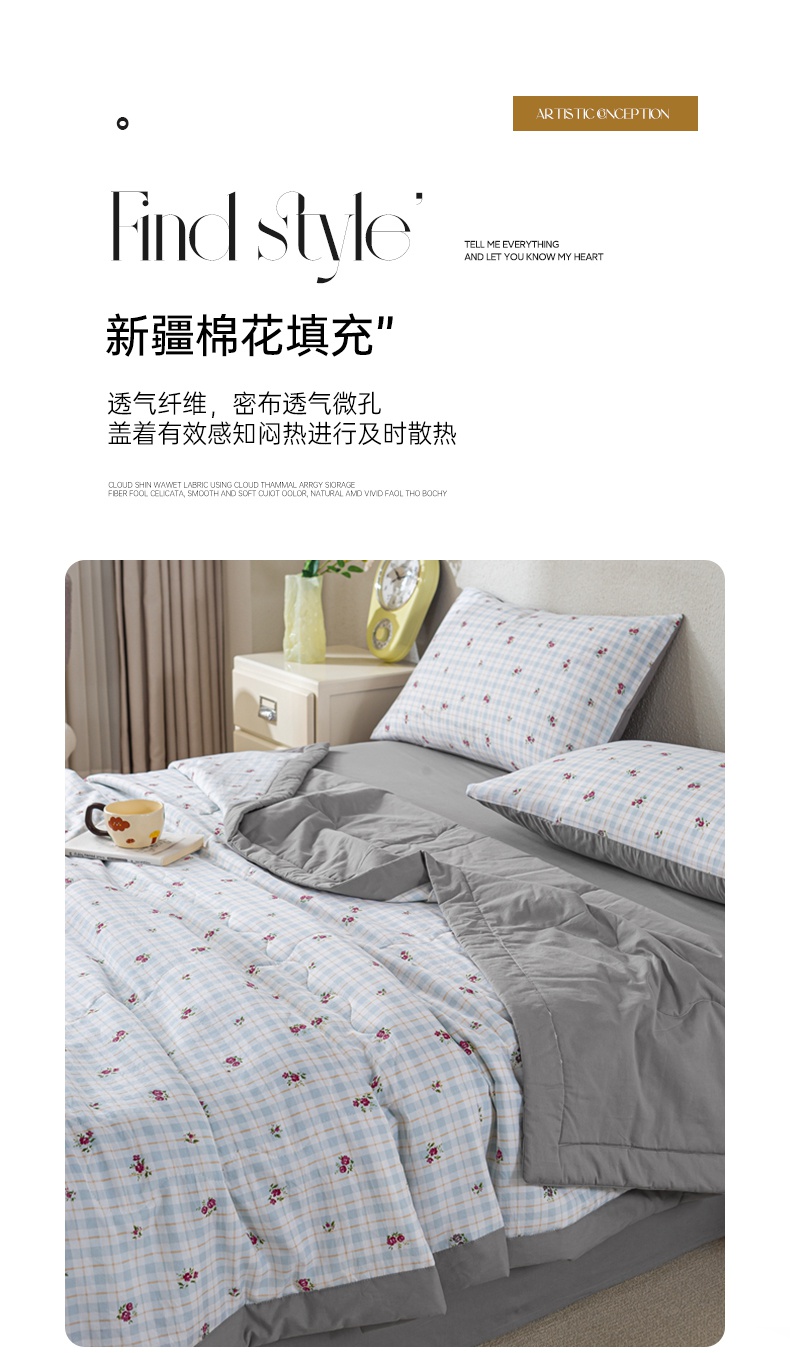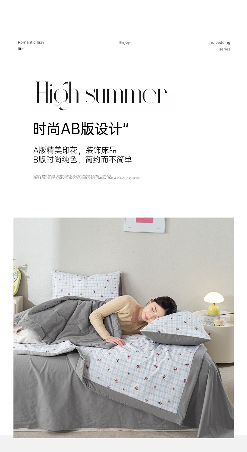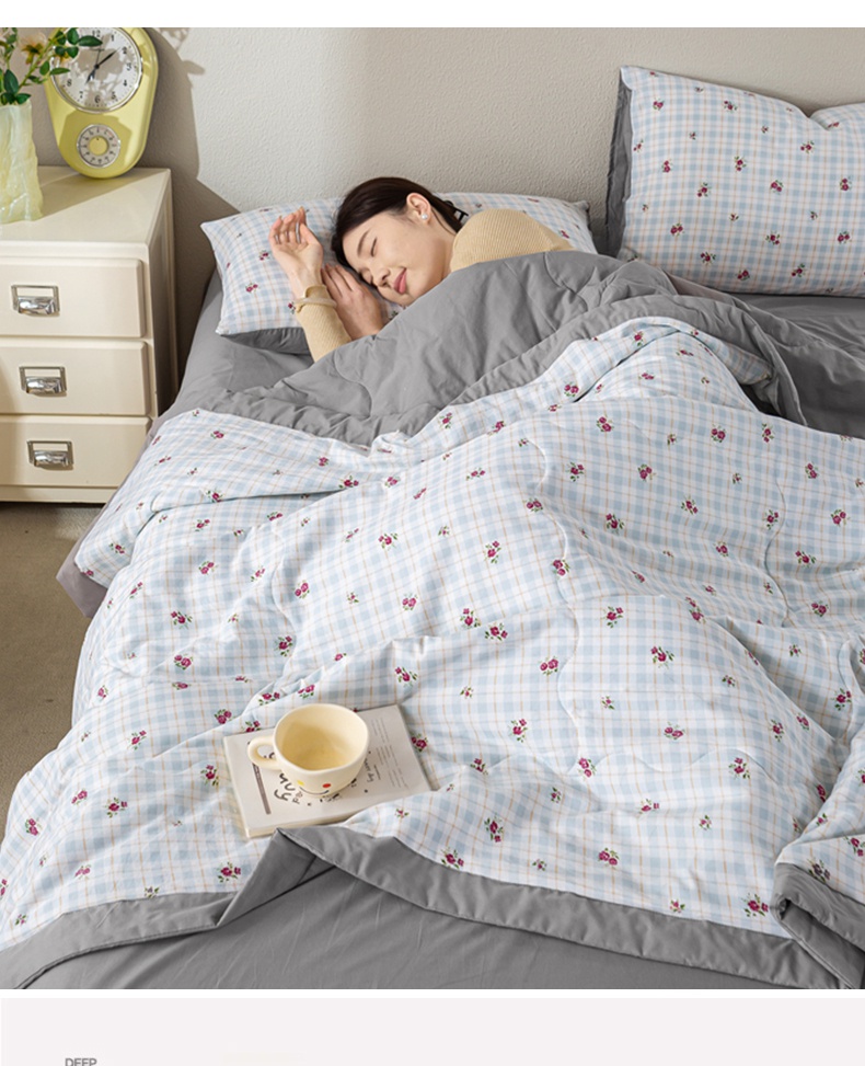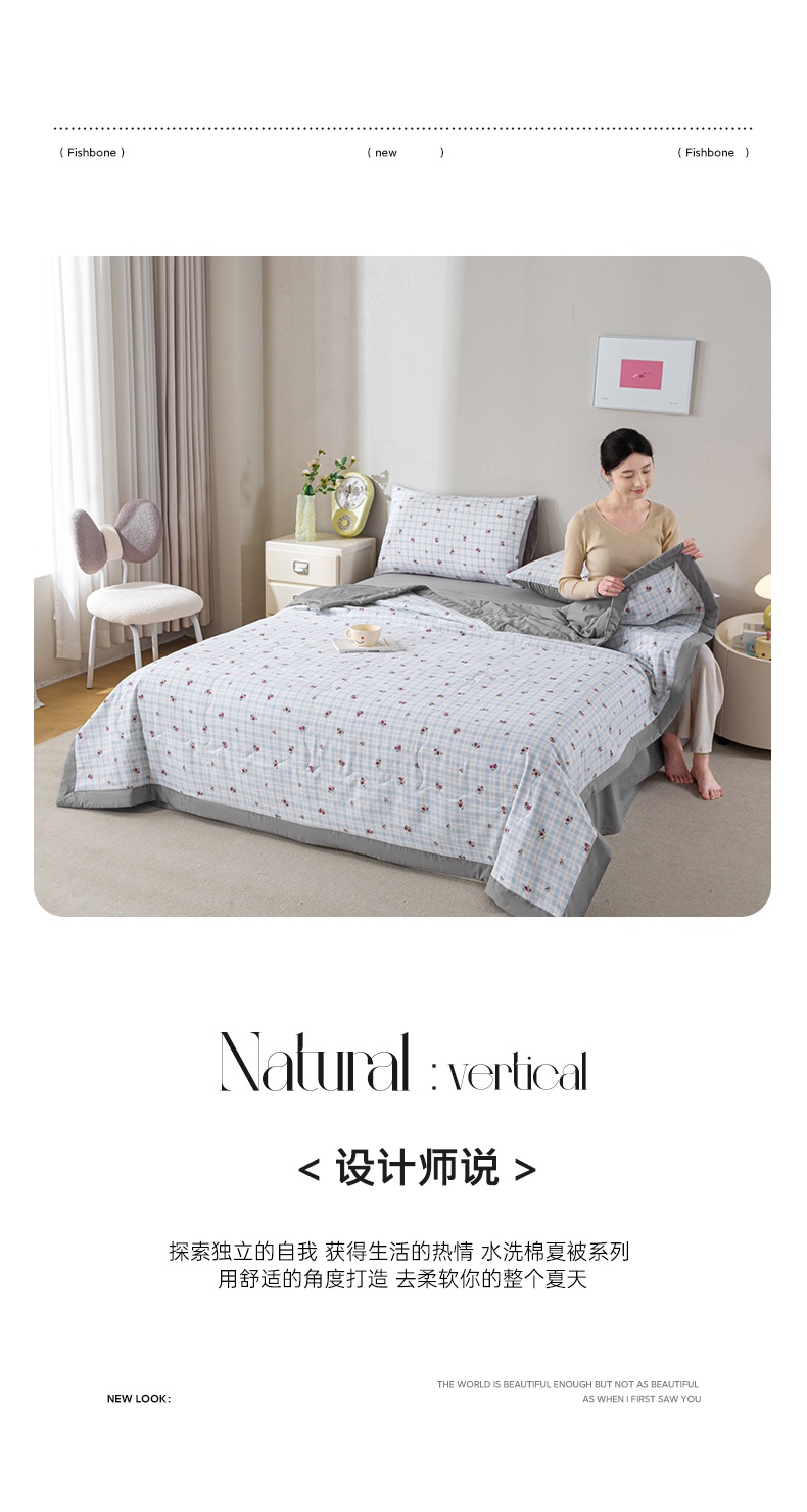 慕木家纺 2025新款A类水洗棉印花新疆棉花夏被空调被(抽空压缩可供跨境) 樱桃格韵