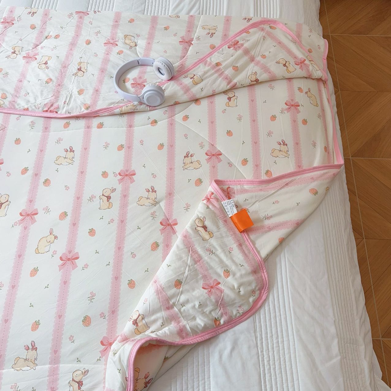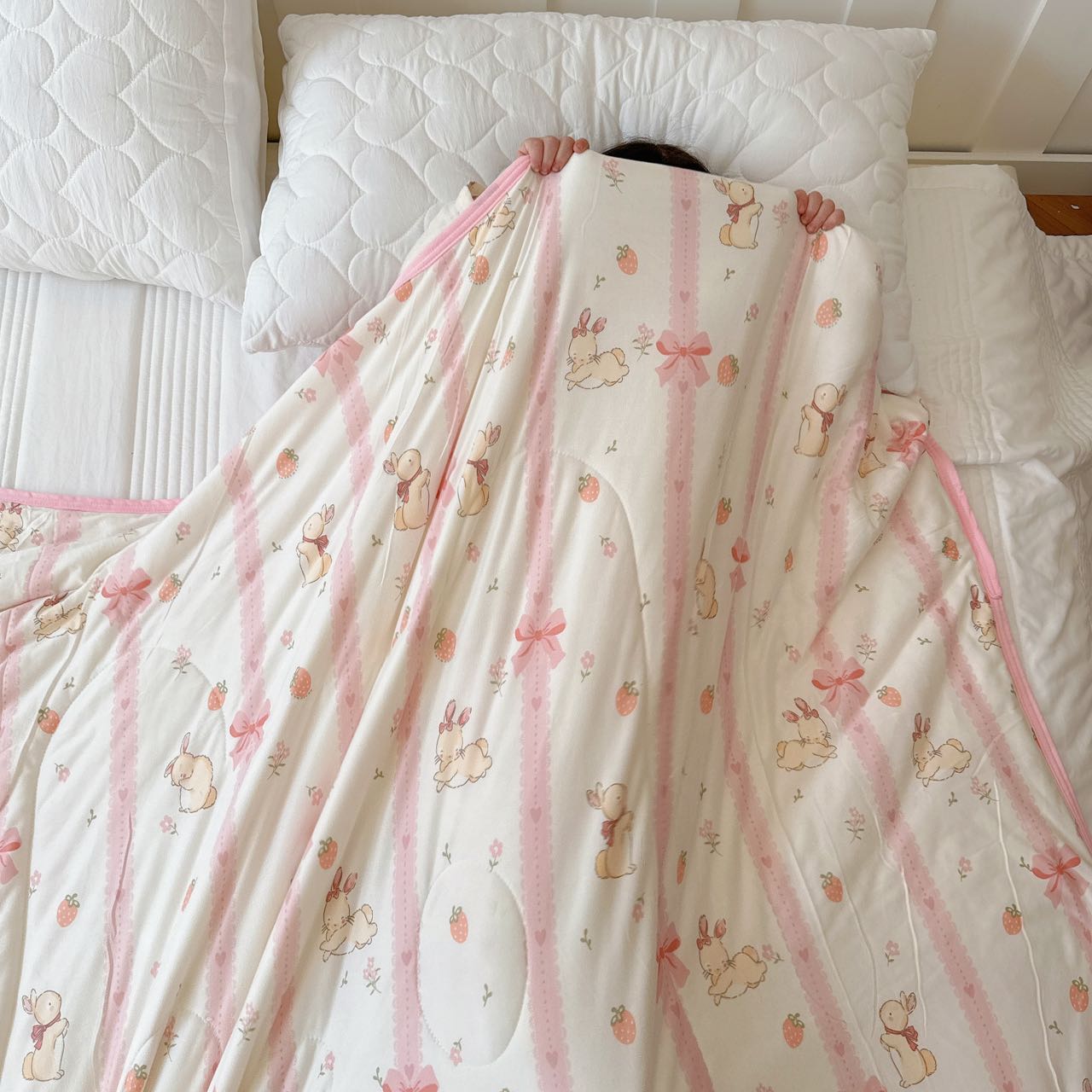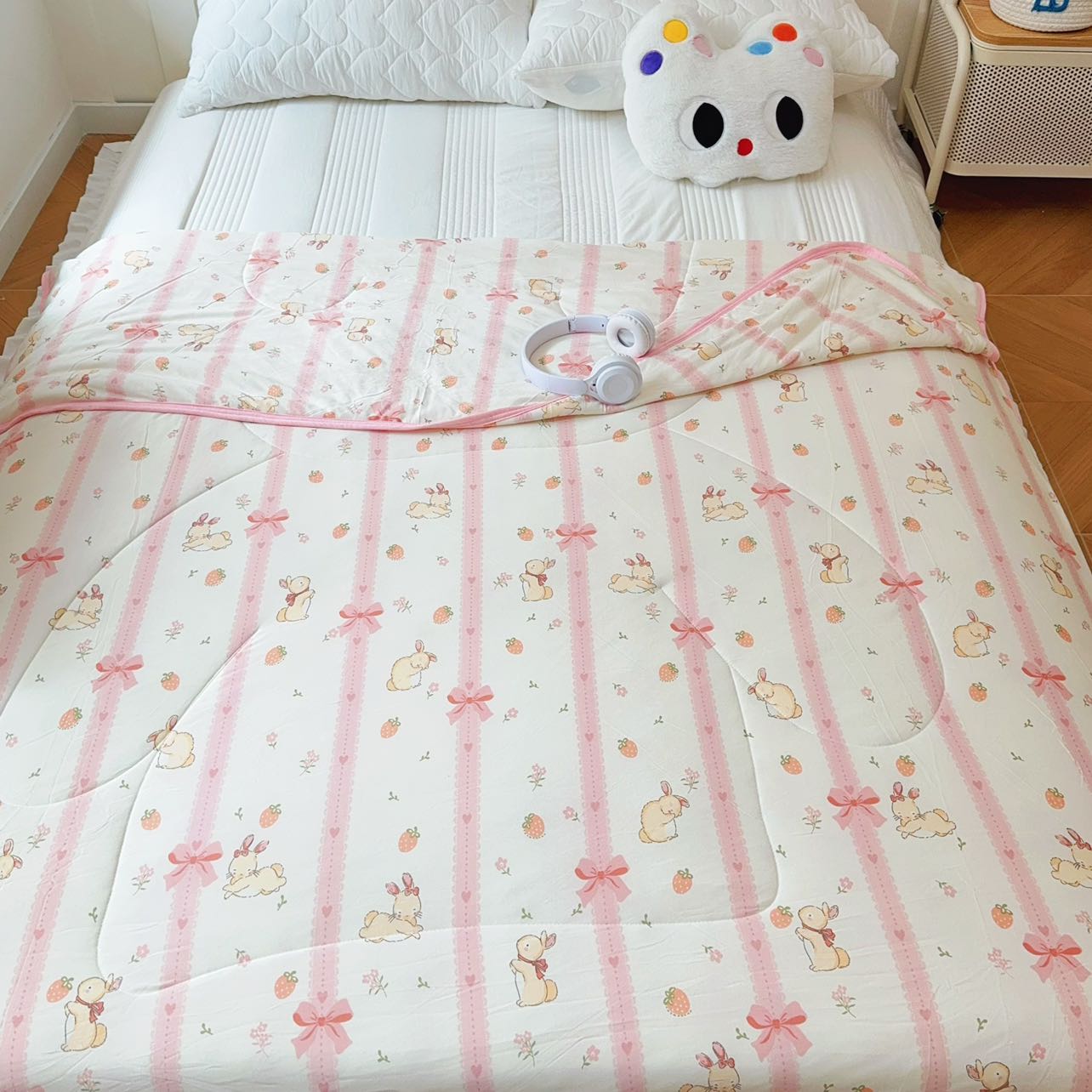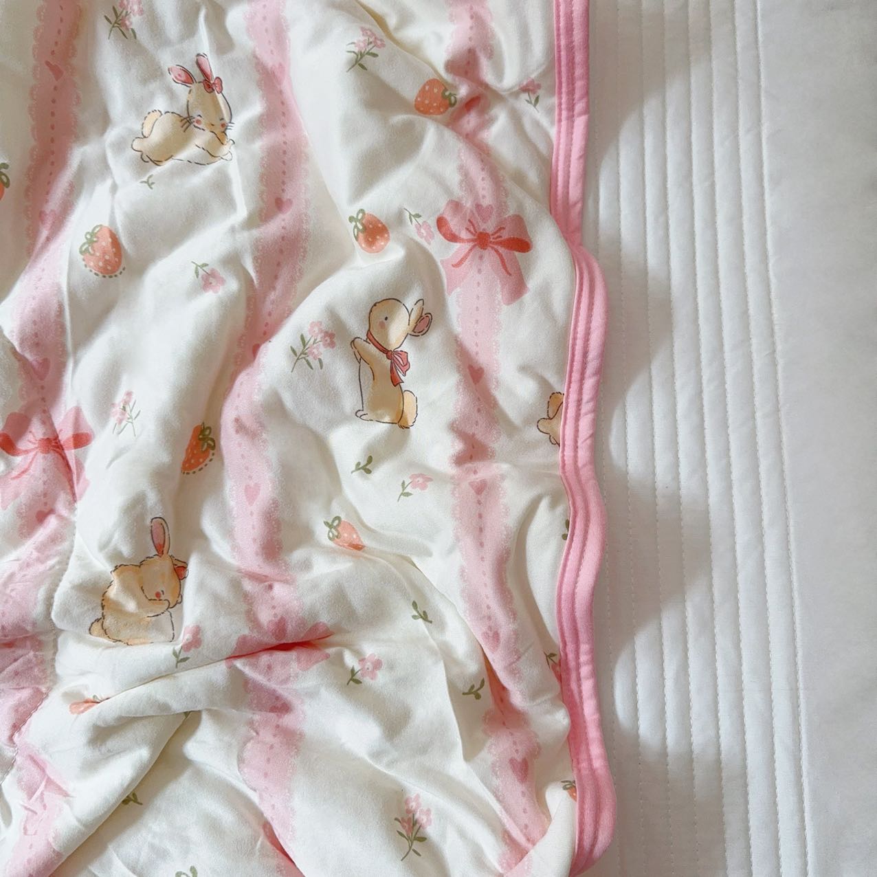 商品名称:兜米家居 2025夏季A类针织棉夏凉被小清新卡通双面针织棉空调被子被芯 蝴蝶结兔兔