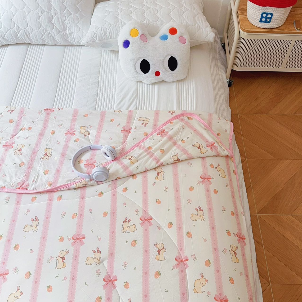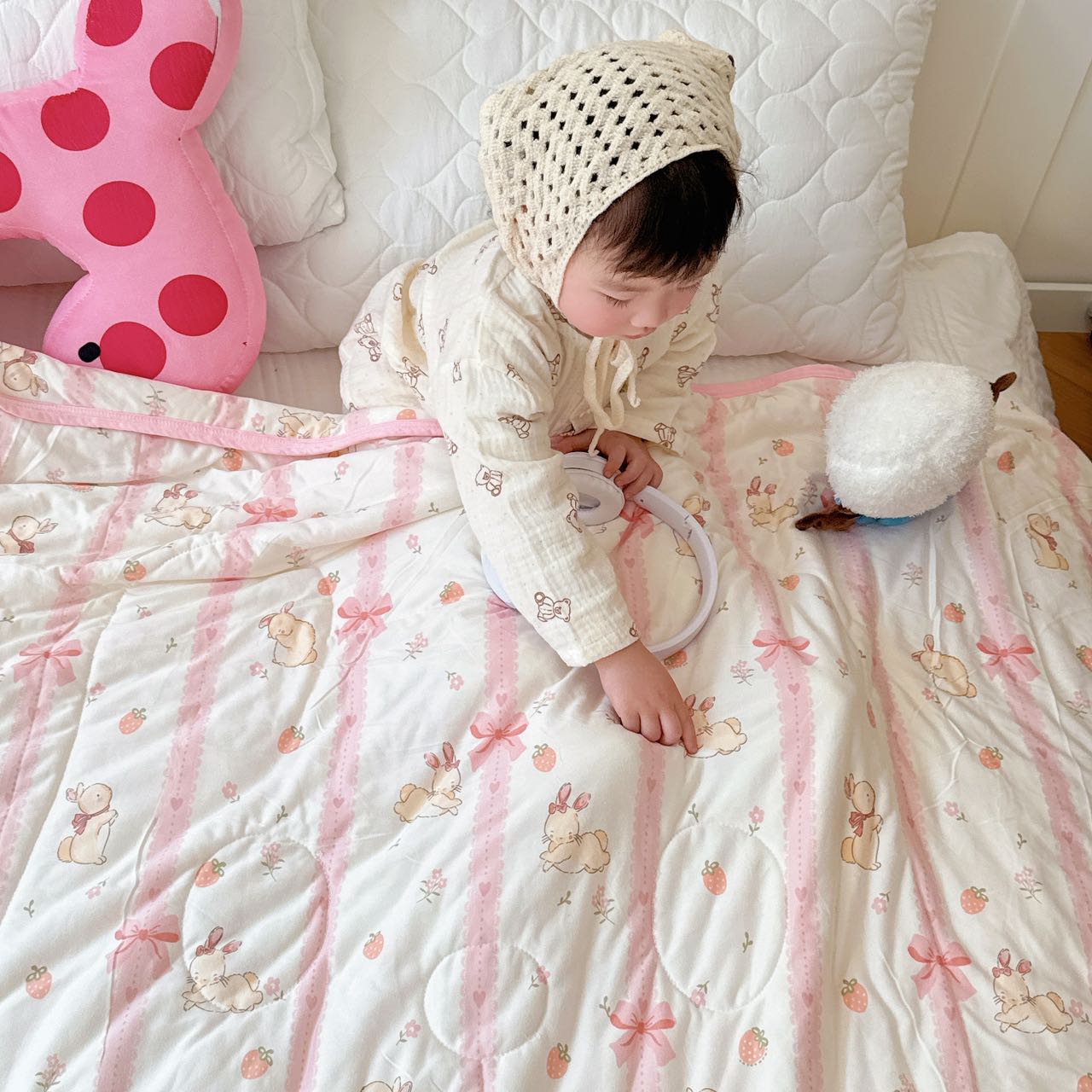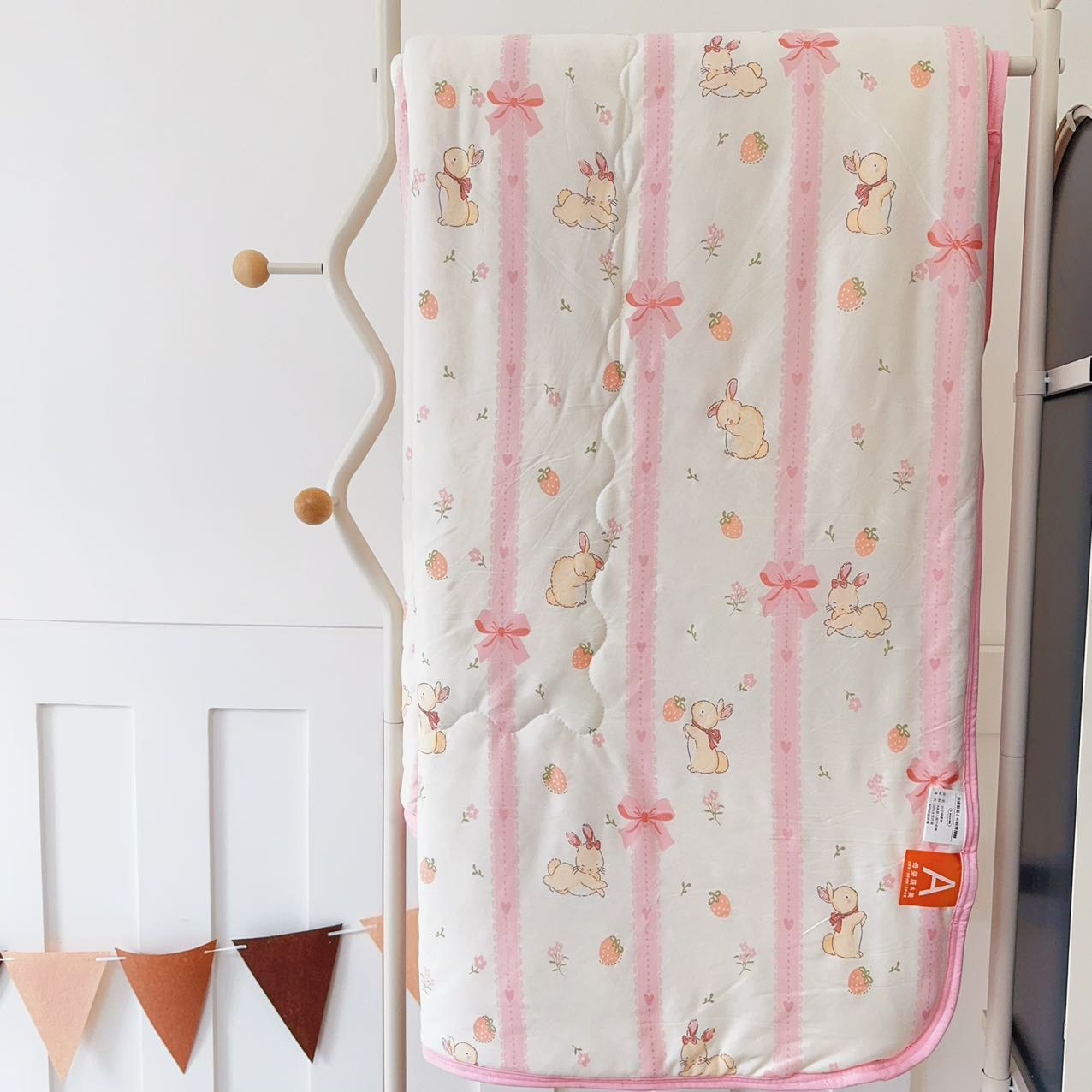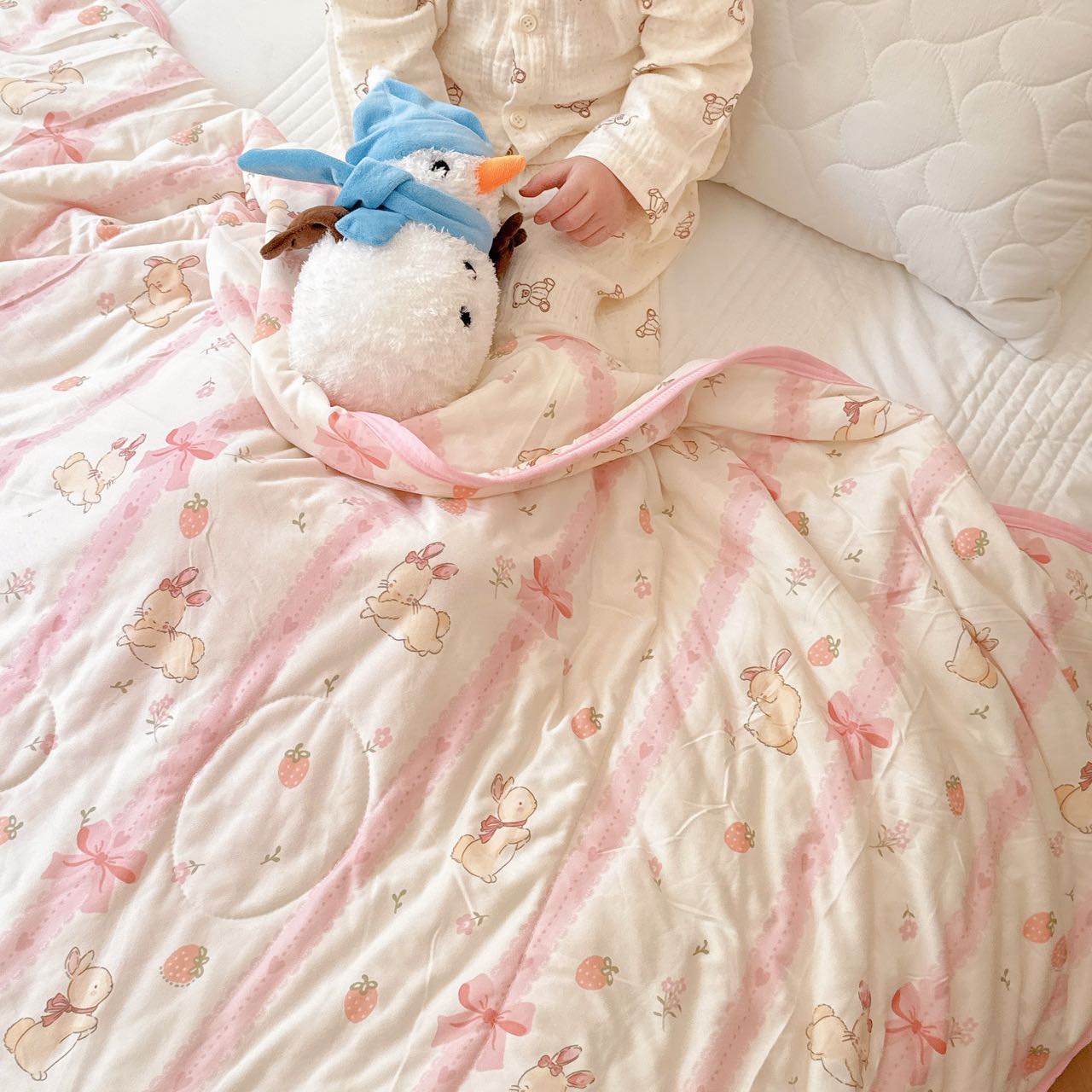 商品名称:兜米家居 2025夏季A类针织棉夏凉被小清新卡通双面针织棉空调被子被芯 蝴蝶结兔兔