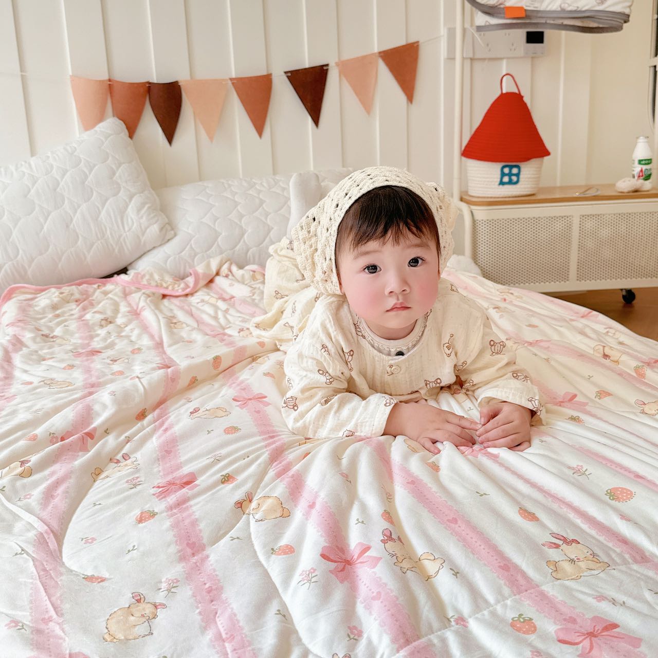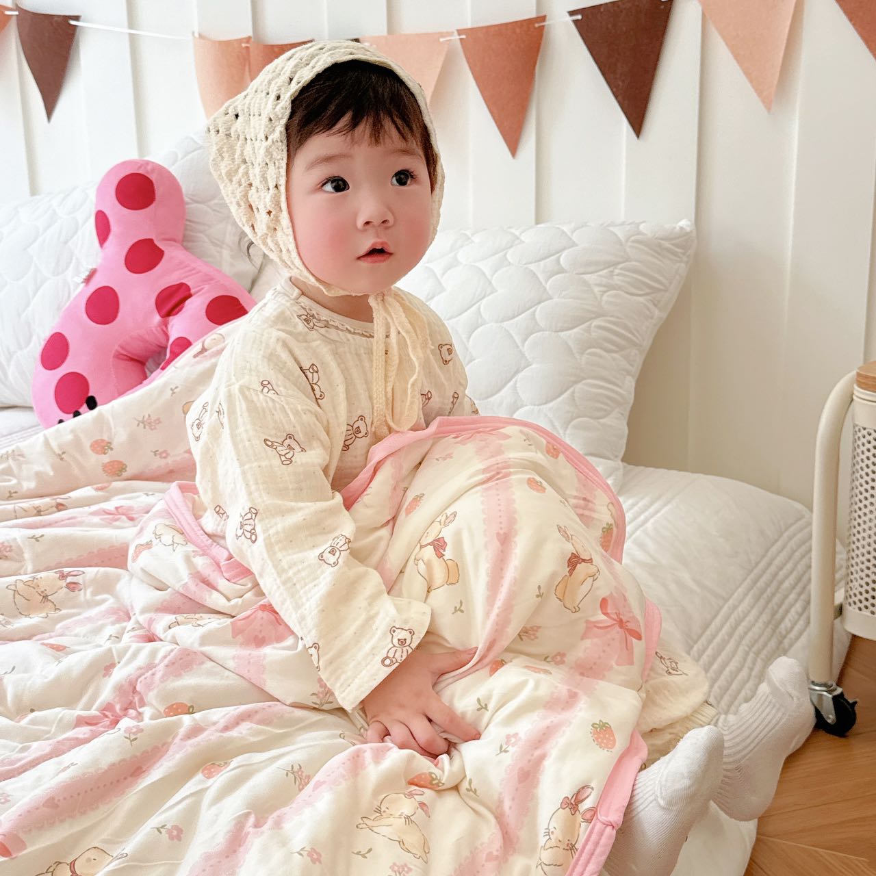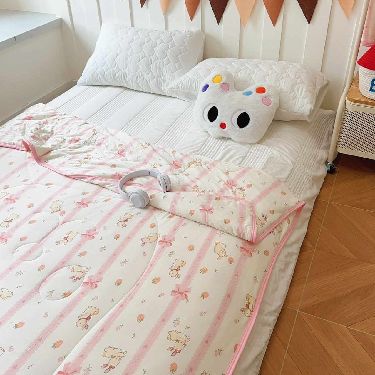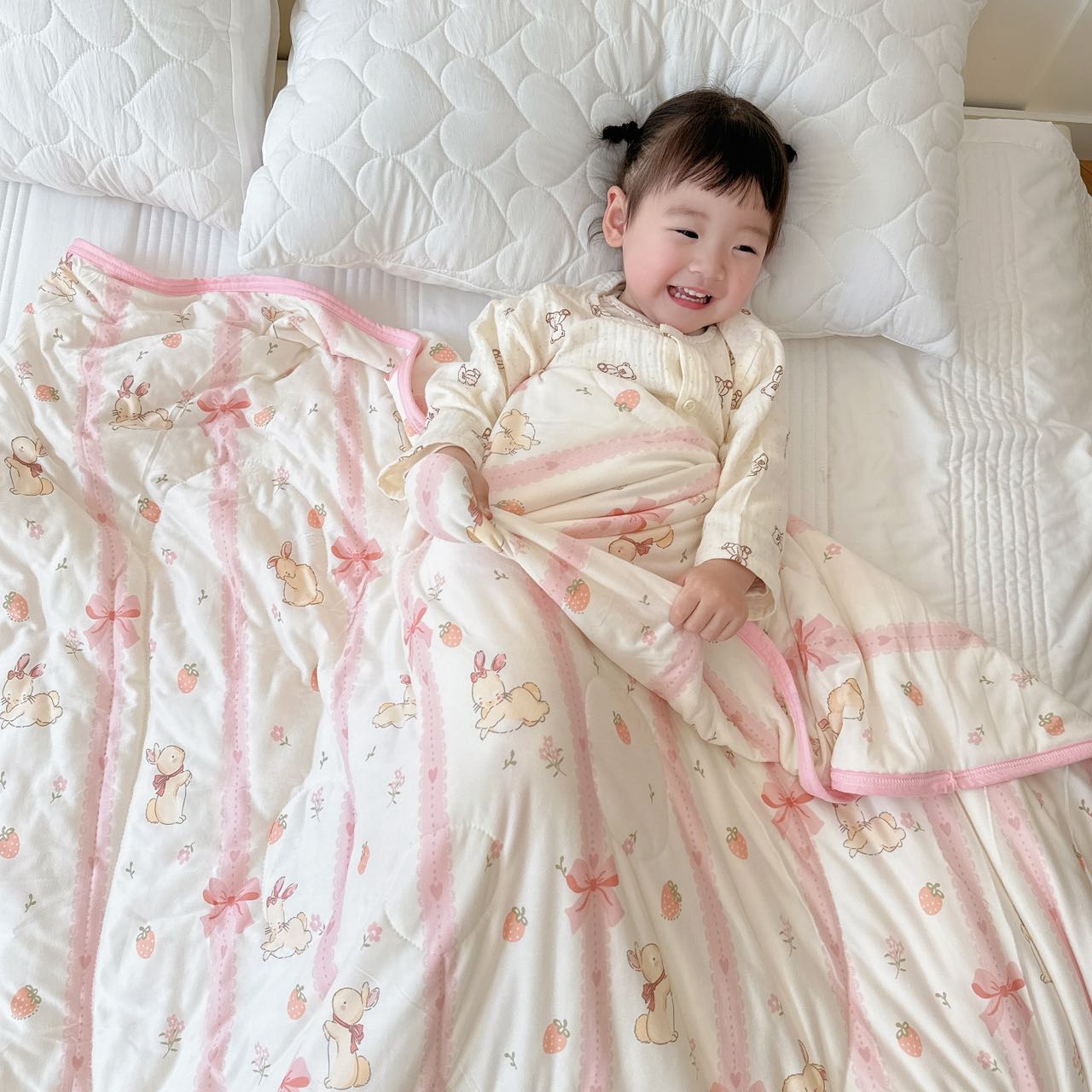 商品名称:兜米家居 2025夏季A类针织棉夏凉被小清新卡通双面针织棉空调被子被芯 蝴蝶结兔兔