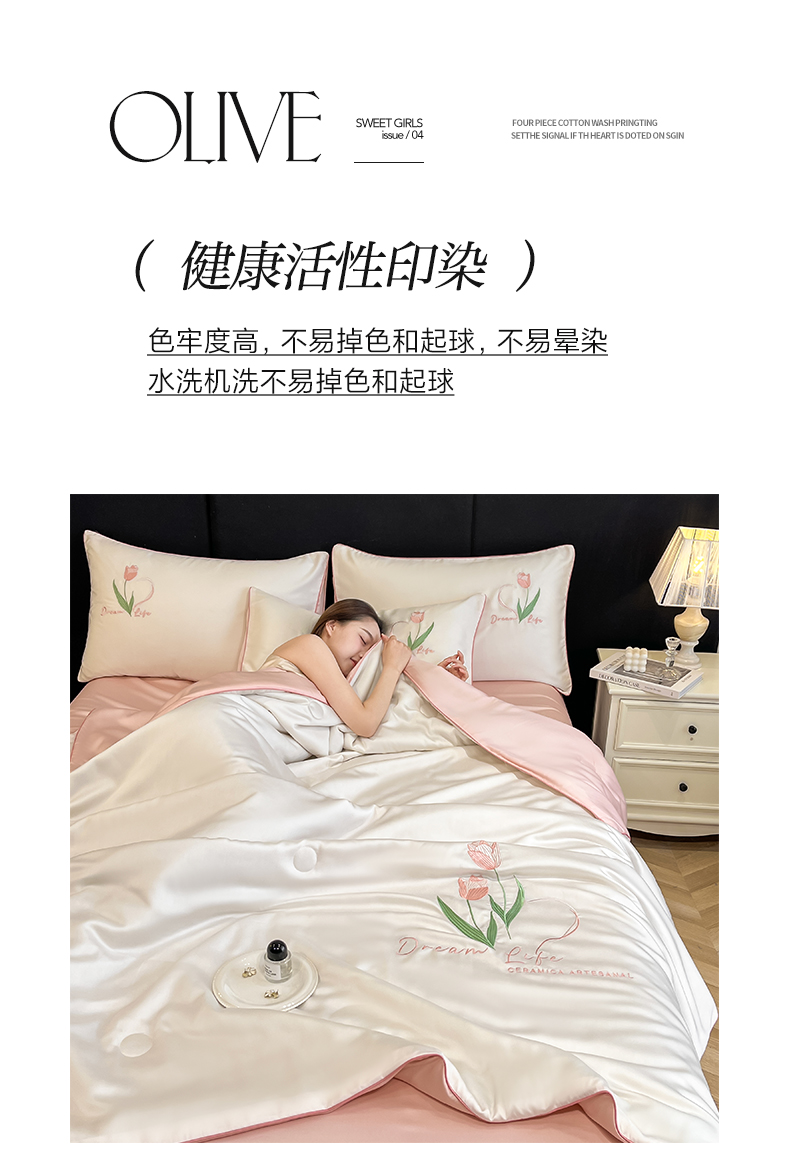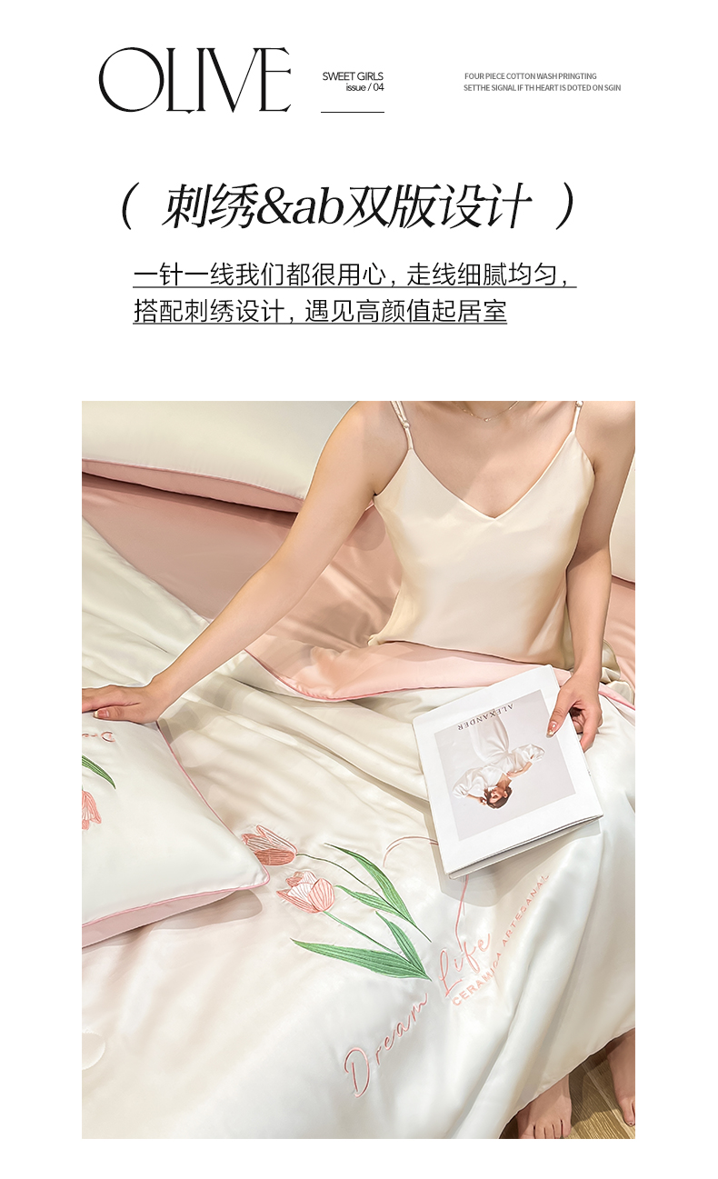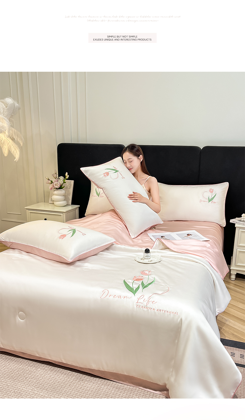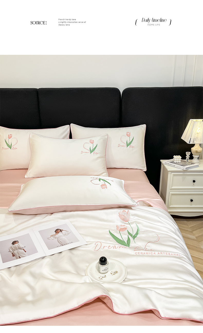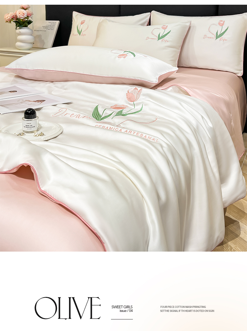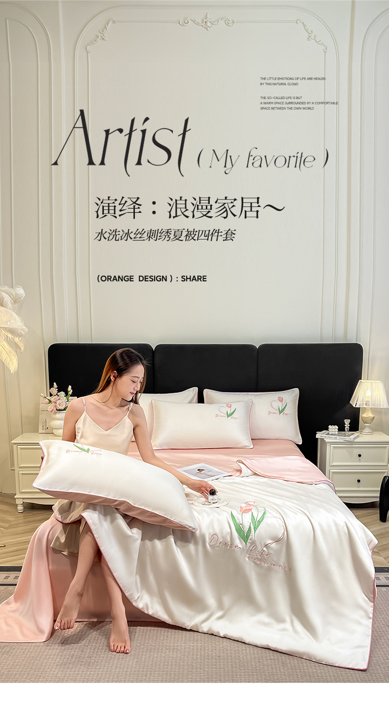 当前位置: 91家纺网 > 商品网购 > 床品套件 > 四件套 > 夏被四件套 > 如一 2025新款水洗冰丝刺绣麻绳夏被四件套花颜系列 花颜-奶白粉