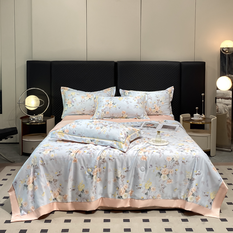 绘萱2025爆款直播印花水洗天丝夏被四件套凉感水洗真丝冰丝夏凉被空调被雅韵