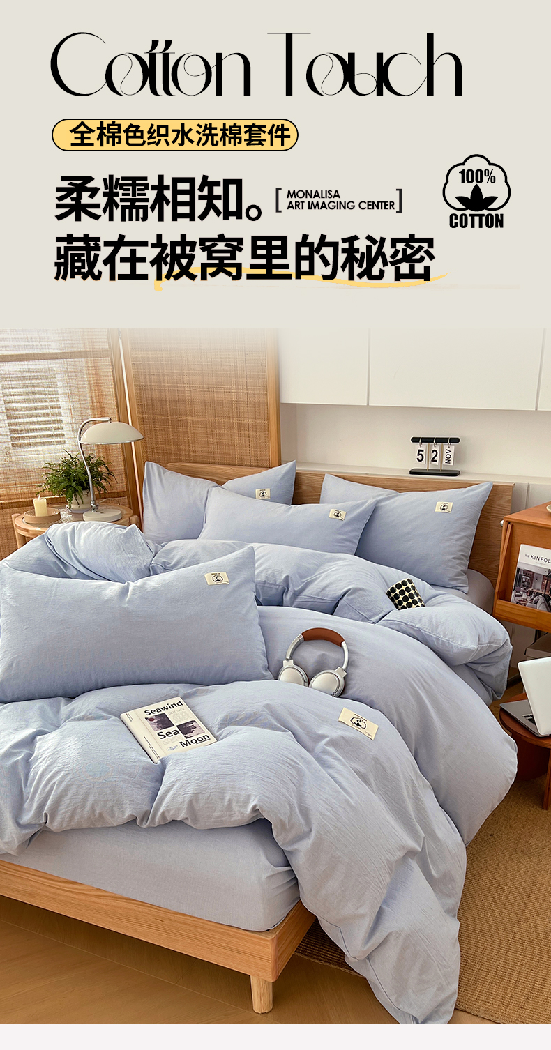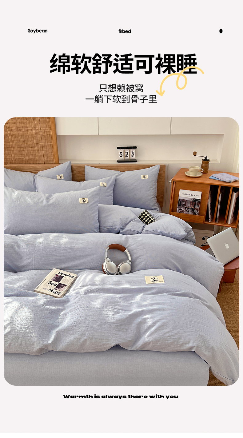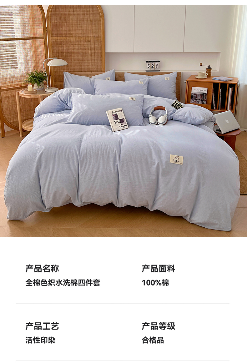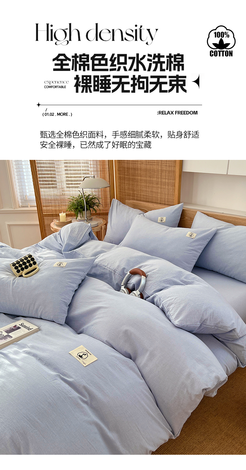商品名称:(总)2025新款色织全棉四件套学生宿舍被套床单四季通用床上套件