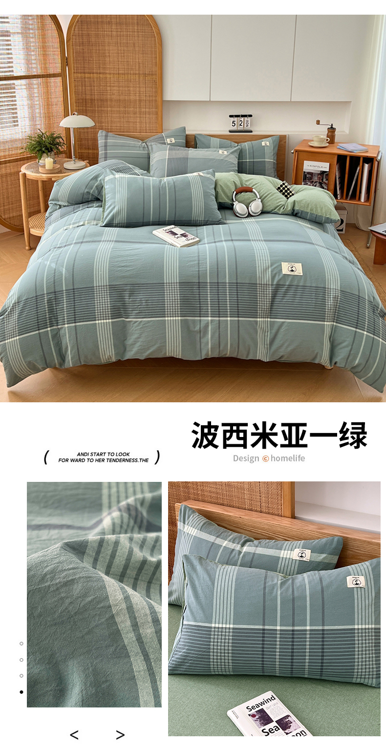 (总)2024新款色织全棉水洗棉四件套,巴莉灰橘,黄小格,维多利亚紫,素色风尚-绿,素色风尚-蓝,素色风尚-灰,暖芙湖蓝,罗拉寻梦,米娅蓝灰,黑中格,粉小格,波西米亚-绿
