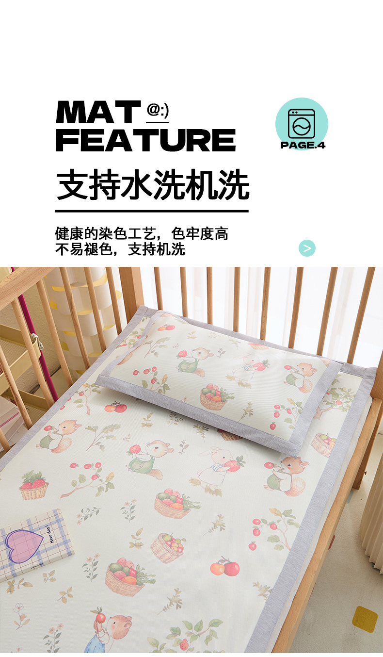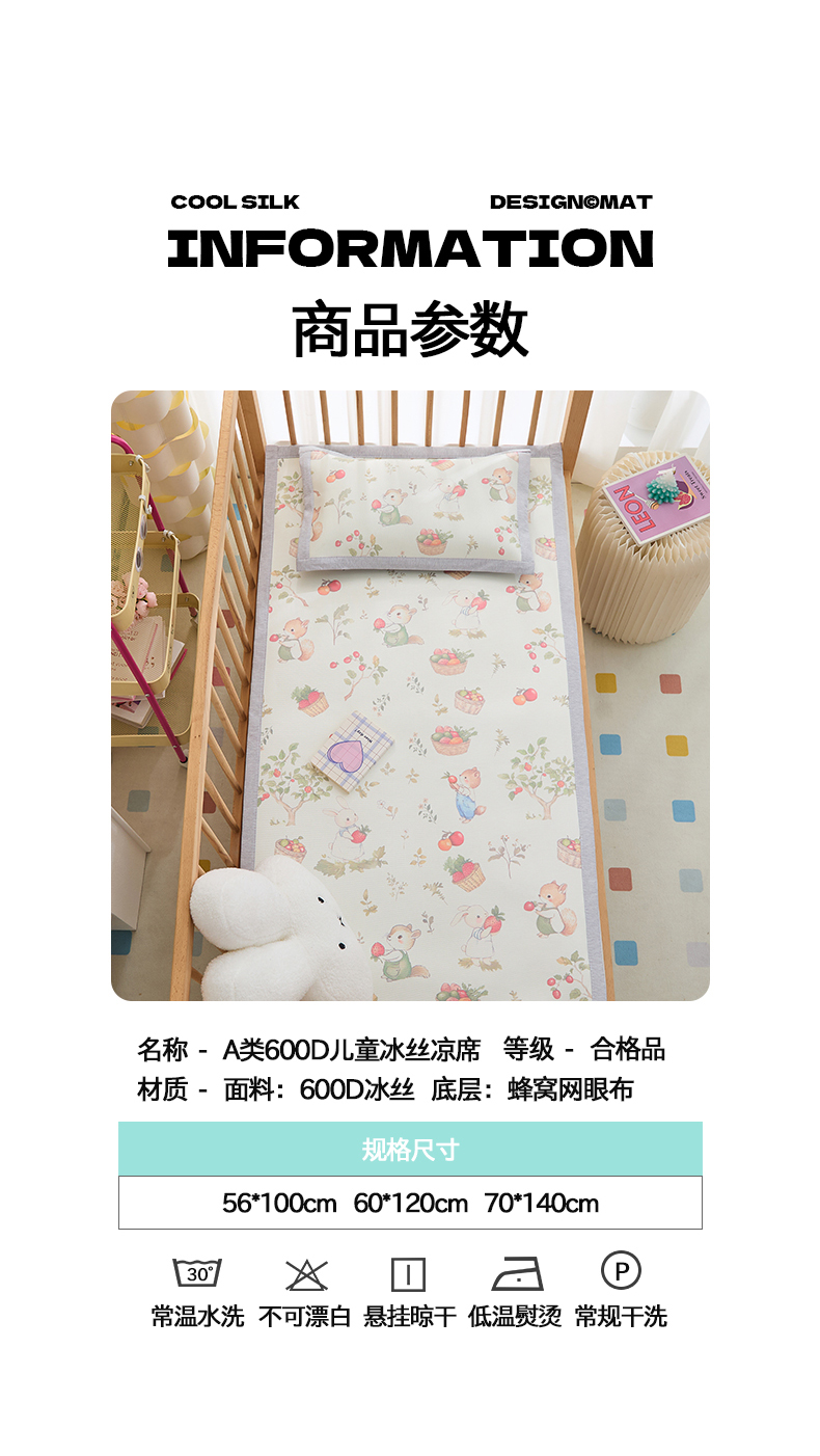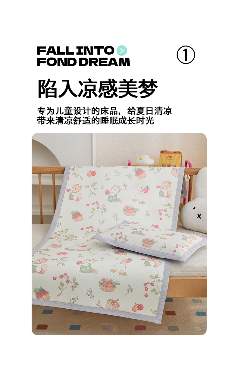 欣品希家纺 2025新款A类600D儿童冰丝凉席 苹果园