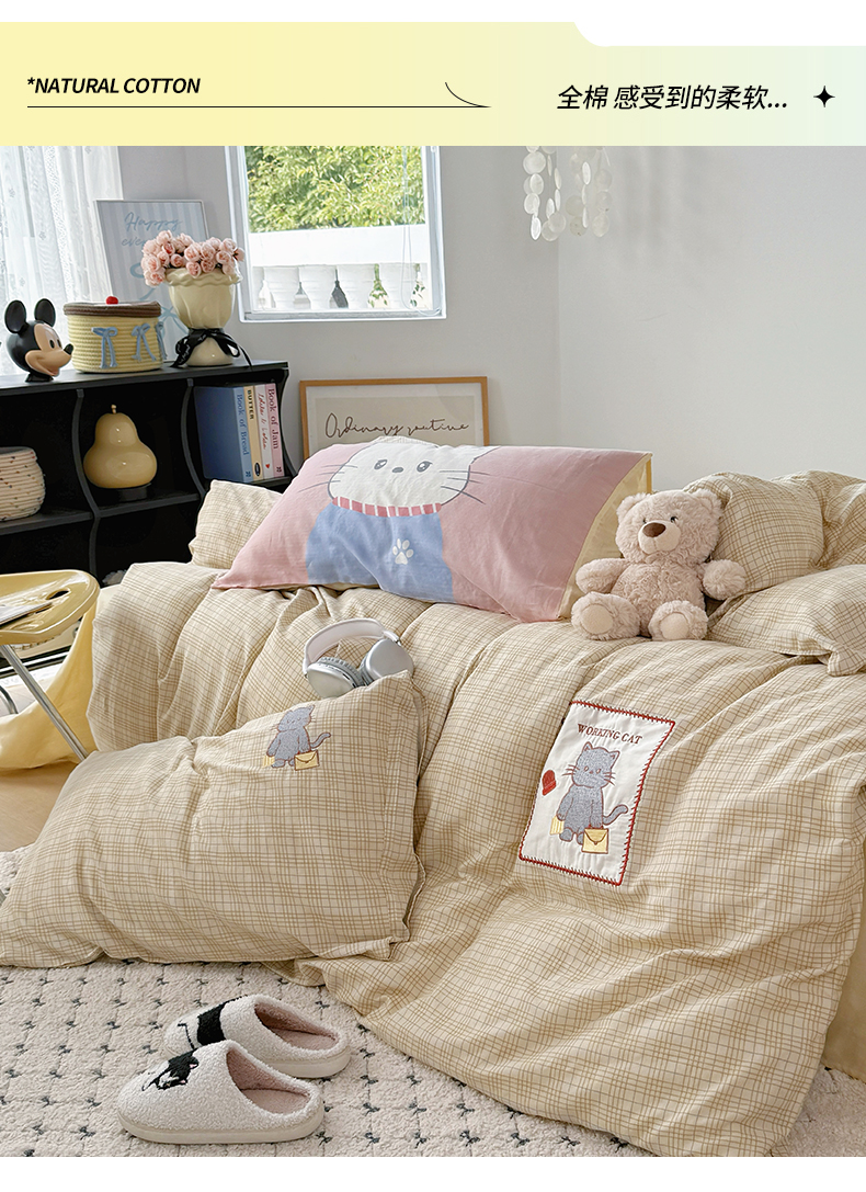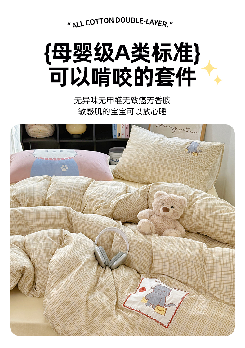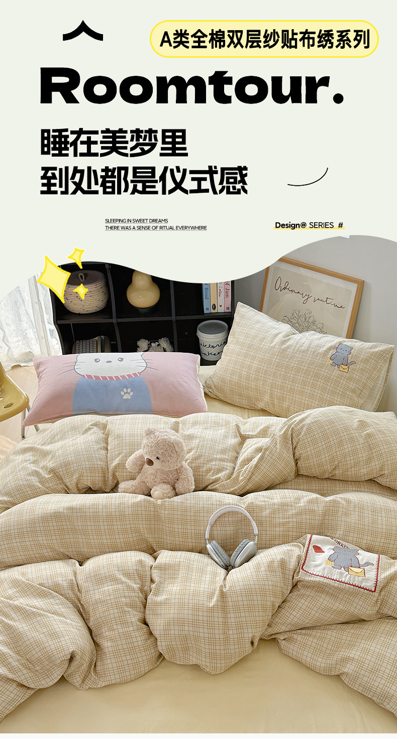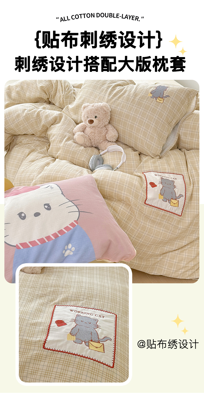 商品名称:TT.one 塔塔家居 2025新款全棉刺绣双层纱贴布绣四件套 小猫散步