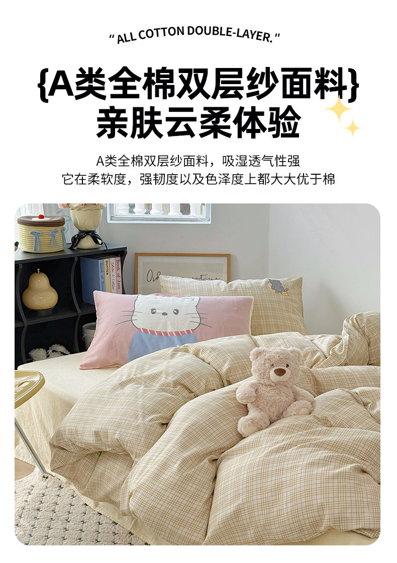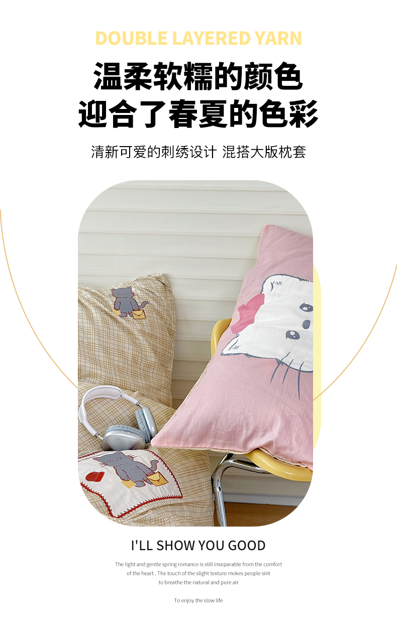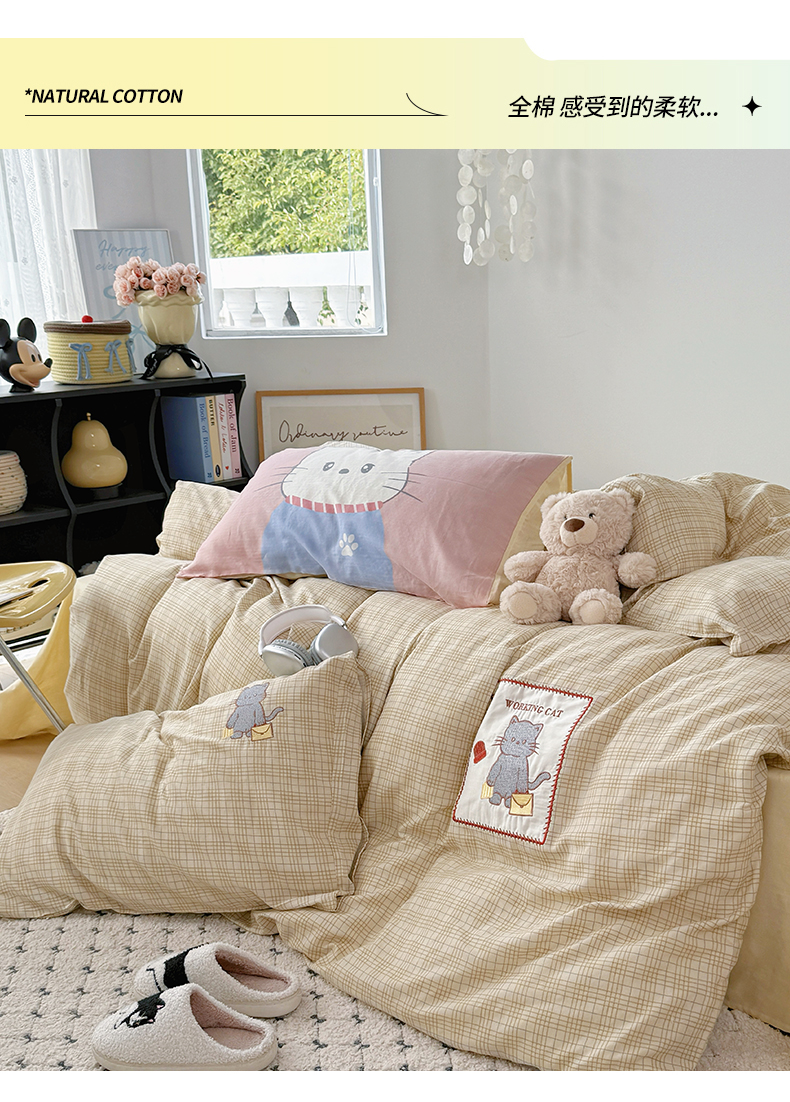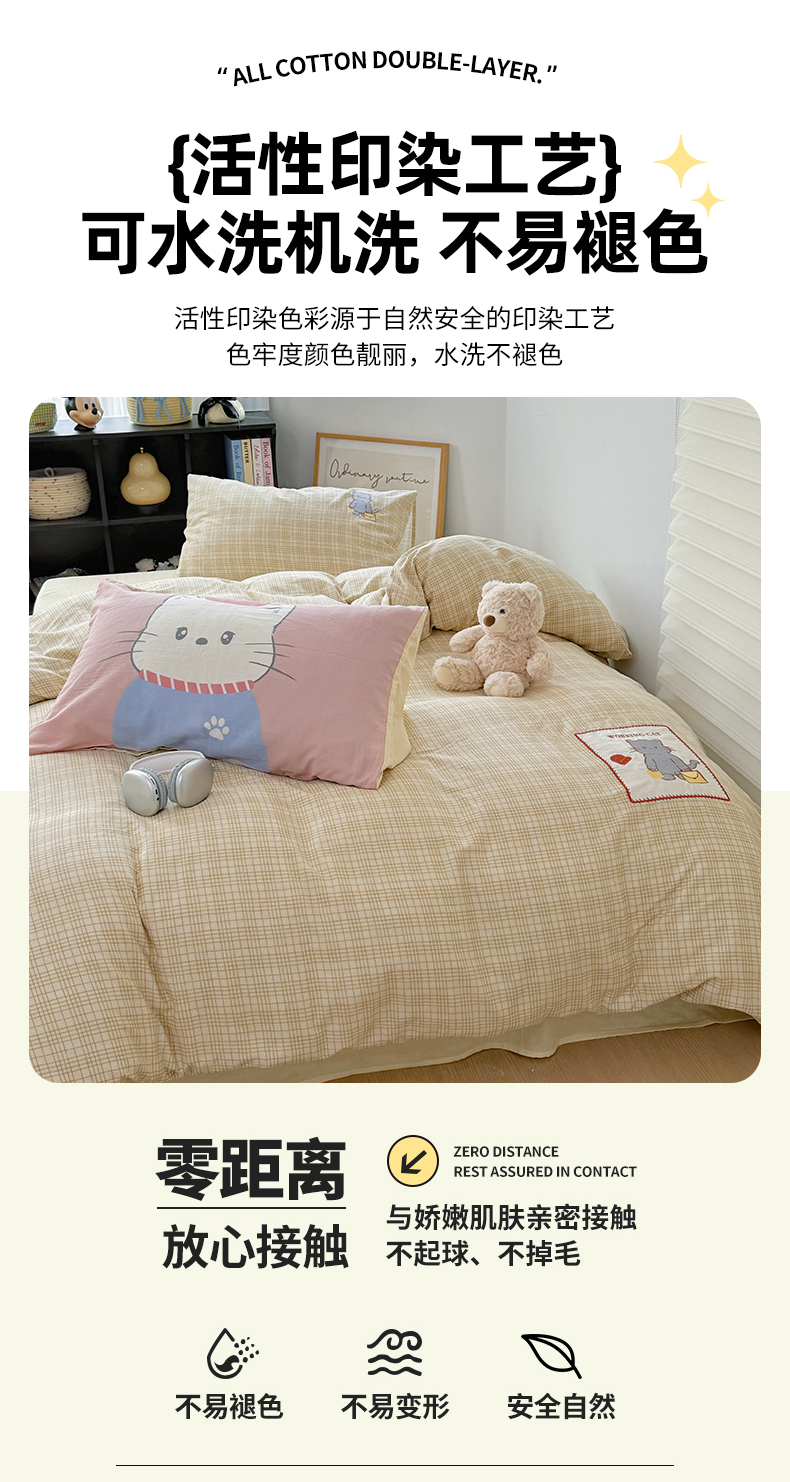 商品名称:TT.one 塔塔家居 2025新款全棉刺绣双层纱贴布绣四件套 小猫散步