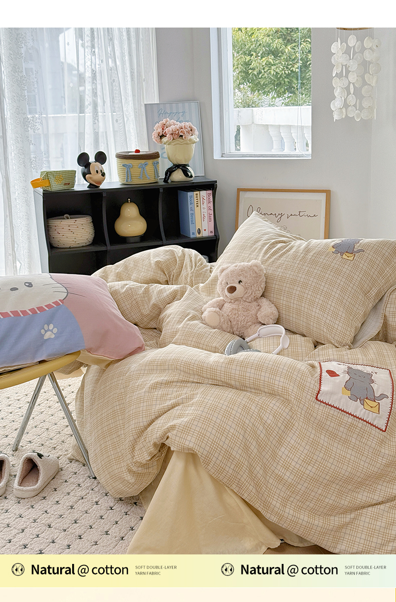 (总)塔塔 2025新款洛丽塔全棉拼接嵌边打褶四件套,蛋糕小熊,甜心派对