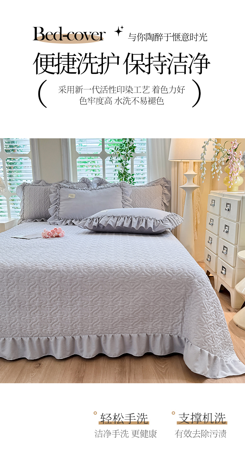 (总)花香四季家纺 2025新款泡芙小姐双层纱华夫格柔棉夹棉绗缝床盖单件三件四件套,泡芙小姐-灰,泡芙小姐-绿,泡芙小姐-米,泡芙小姐-玉,泡芙小姐-紫