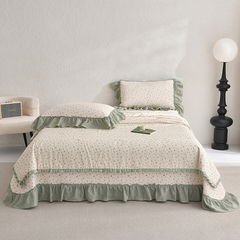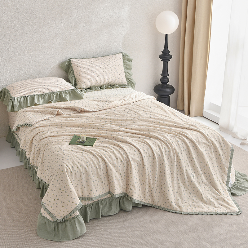 (总)有货 2025春夏新款全棉纯棉双层纱夏被夏凉被空调被+床盖三件套