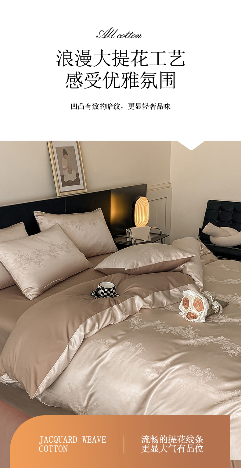(总)琪格格纺织 2025新款50S贡缎大提花加厚全棉磨毛四件套,罗拉之梦-可可棕,理查德-咖,流光蝶影-粉紫,罗拉之梦-粉紫,如梦花涧-雨棕,随意-咖,心愿-粉紫,一蔓千花-羽棕,永恒韵律-灰,永恒韵律-咖