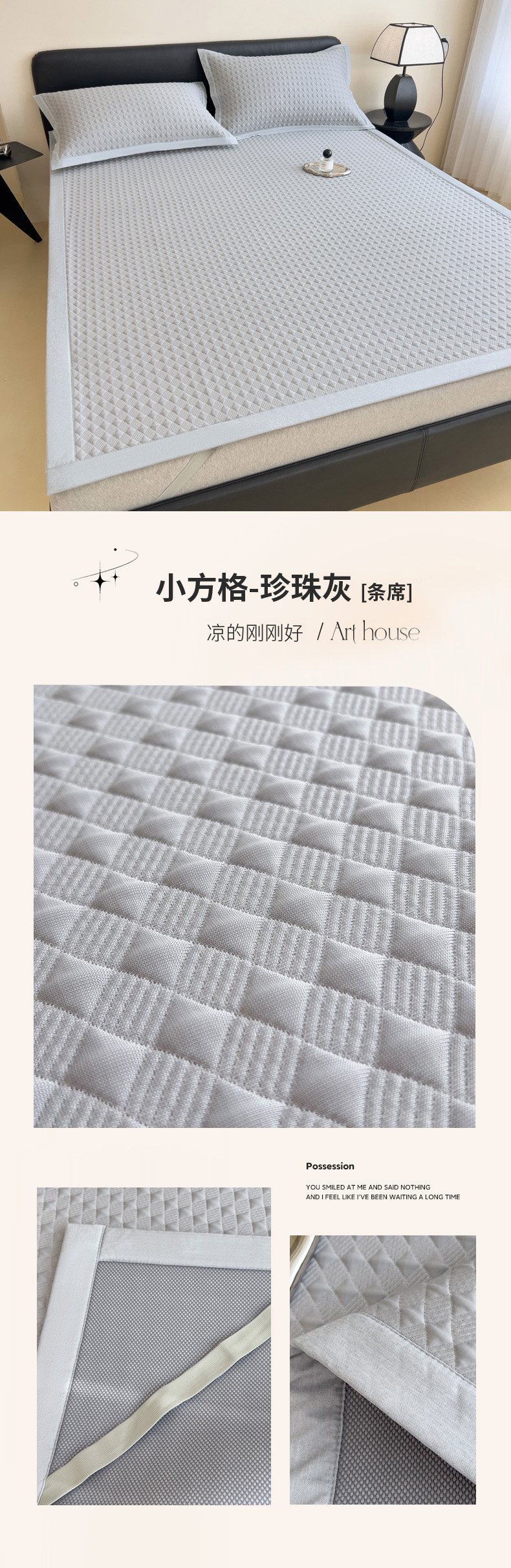 (总)席世家 2025春夏新款430g凉感豆豆床裙席凉席席子-幻影系列,幻影-米灰,幻影-蜜裸粉,幻影-松灰,幻影-星雾蓝
