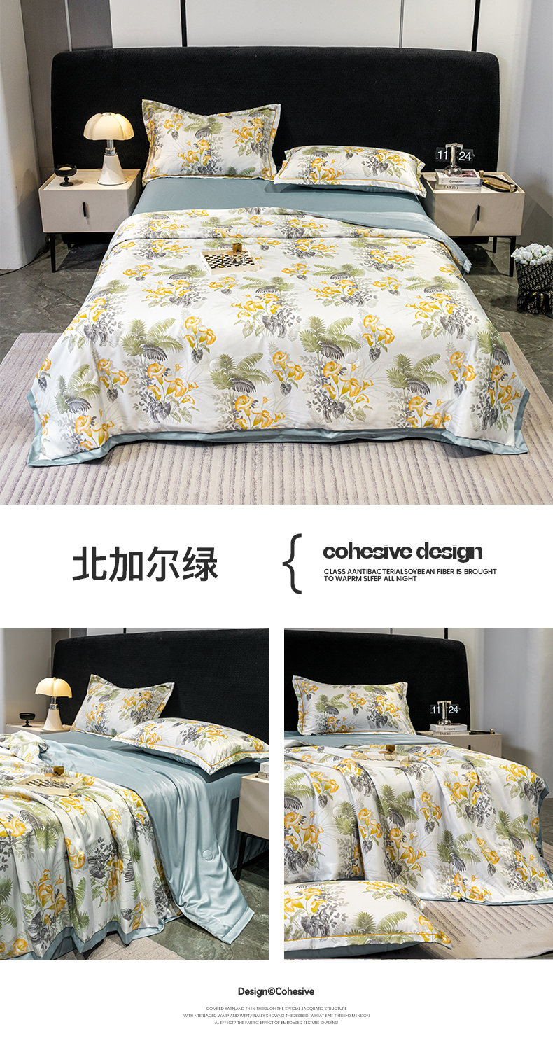 商品名称:归属2025新款水洗真丝夏被四件套空调被夏凉被 北加尔绿