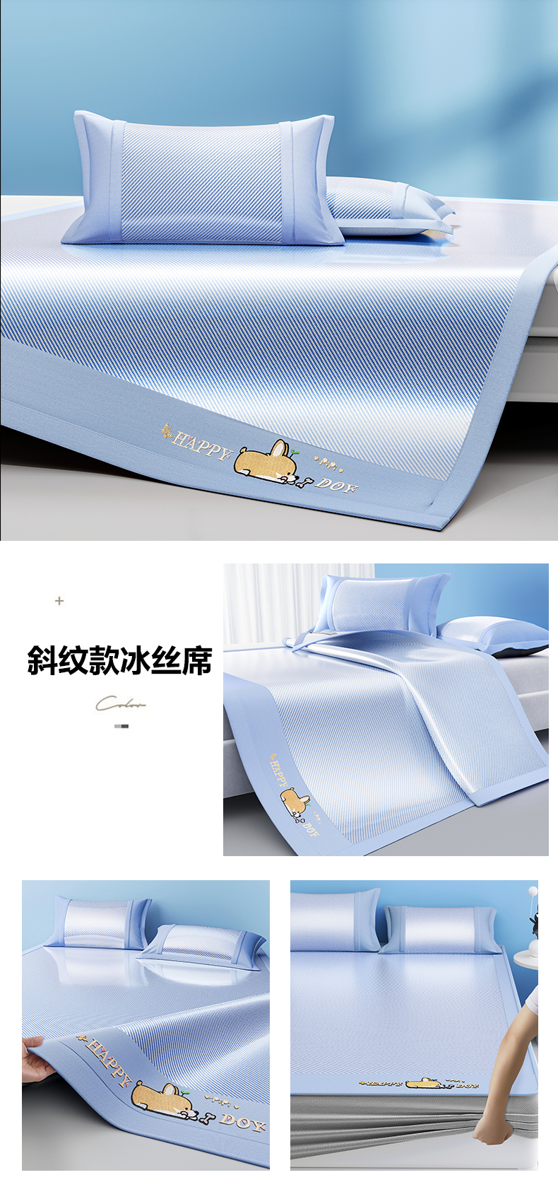 (总)2025新款斜纹宽柯基凉感冰丝席