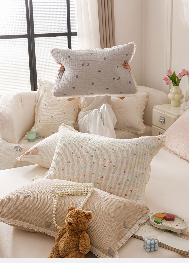 (总)麻依 2025新款棉花糖枕巾全棉四层纱布双层花边,抱抱熊,点点-灰,点点-米白,花影-粉,花影-米白,墨心,奶油草莓,帕帕熊,牵手小熊,生日腊肠狗,甜甜圈小熊,小蝴蝶结,小南瓜,小柿子,樱桃香