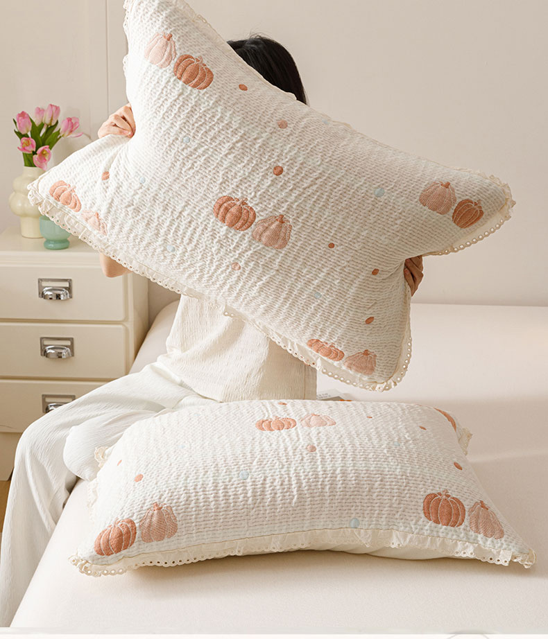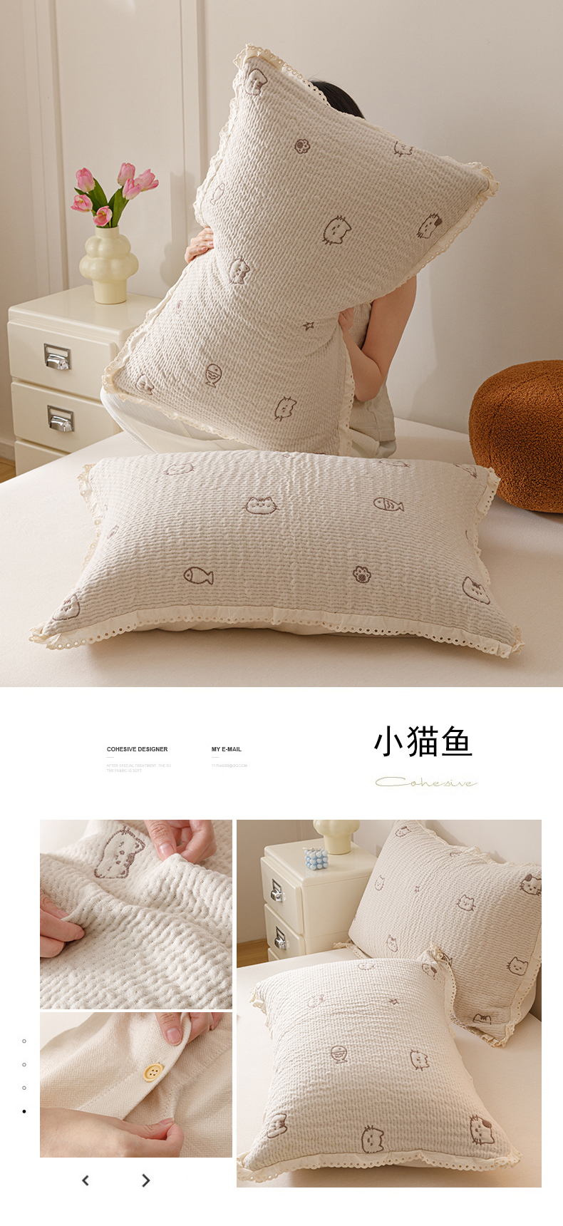 (总)麻依 2025新款韩国纱布色织提花枕套柔软顺滑