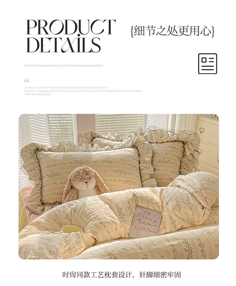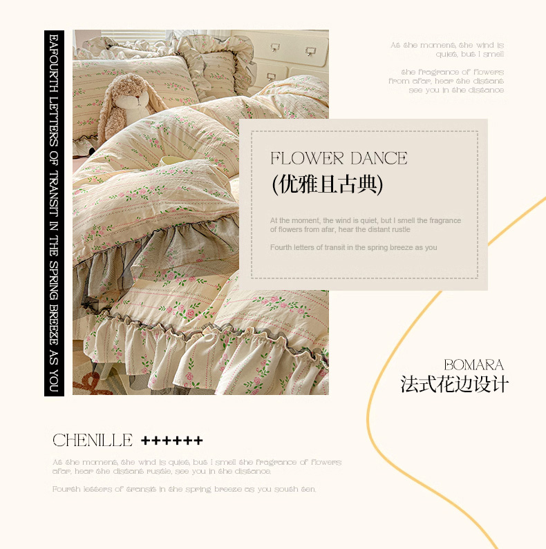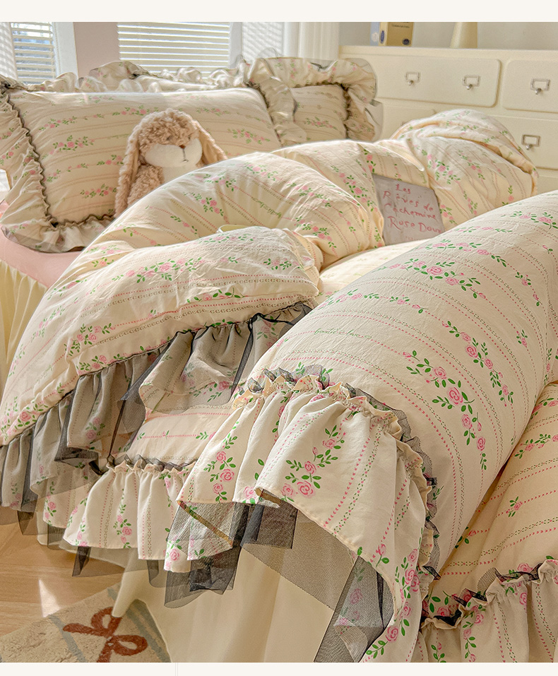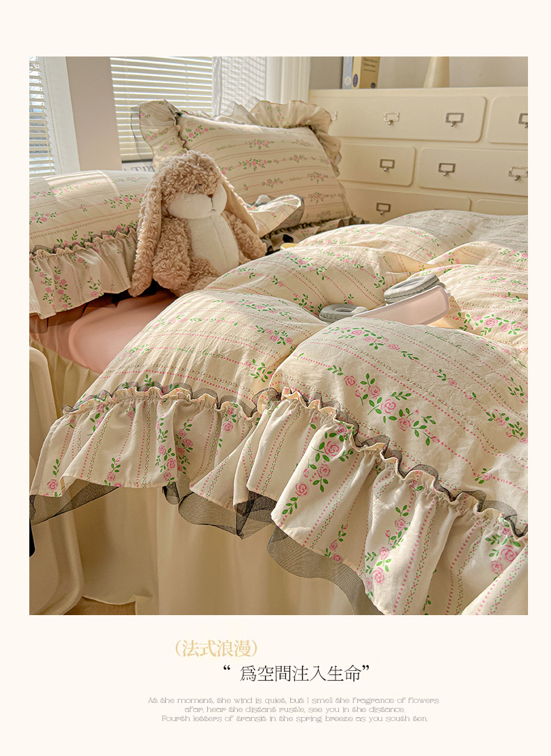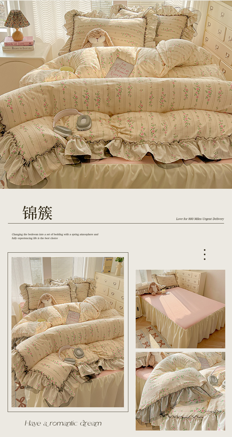 当前位置: 91家纺网 > 商品网购 > 床品套件 > 四件套 > 其它四件套 > 眠帛家居 2025新款A类法式皱皱纱小清新蕾丝花边四件套 锦簇