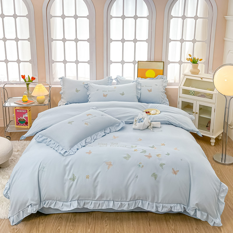 (总)恋之语 2025新款水洗棉刺绣花边四件套-蝶羽