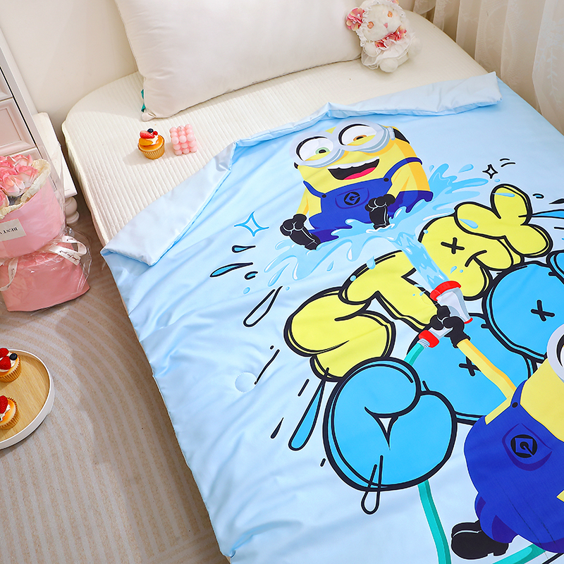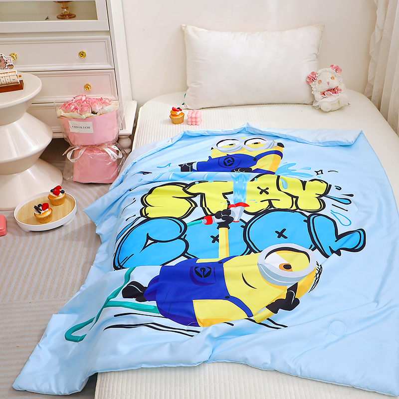 2025新款三丽鸥正版授权库洛米儿童大版夏被夏凉被凉感天丝空调被夏凉被幼儿园午睡凉席夏被三件套 小黄人-MINI