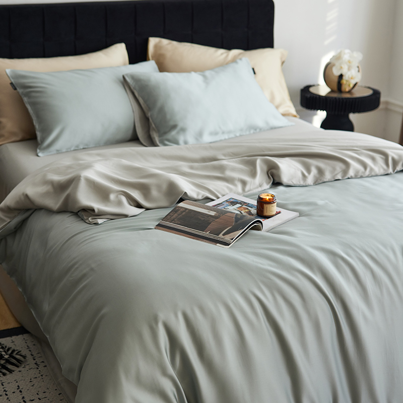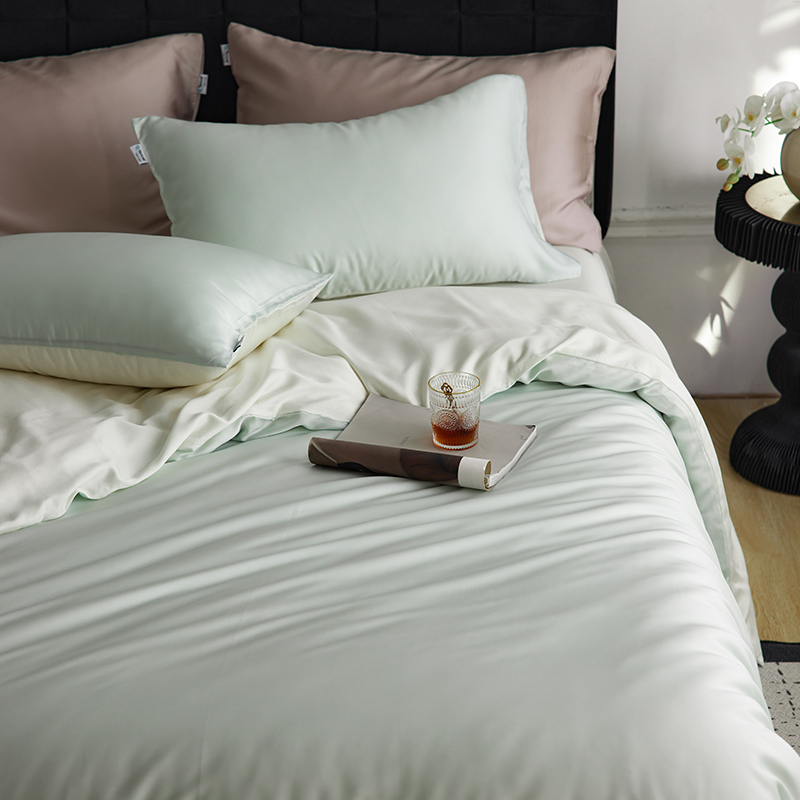 (总)玉宇阁家居 2023新款春夏60支兰精天丝拼色四件套,都市灰香槟,海盐松露,芥末黄香槟,裸粉香槟,茉莉奶绿,浅灰鹅黄,若草乳白
