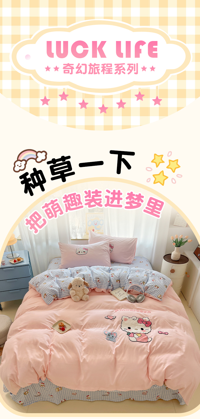 当前位置: 91家纺网 > 商品网购 > 床品套件 > 四件套 > 全棉普通四件套 > 罗亿家纺 2025新款110g高克重云朵棉直播热款毛巾绣四件套(场景二)提供买家秀 可爱小猫-黄