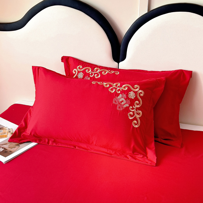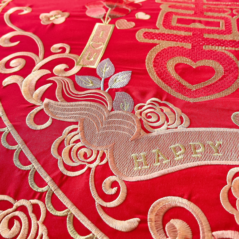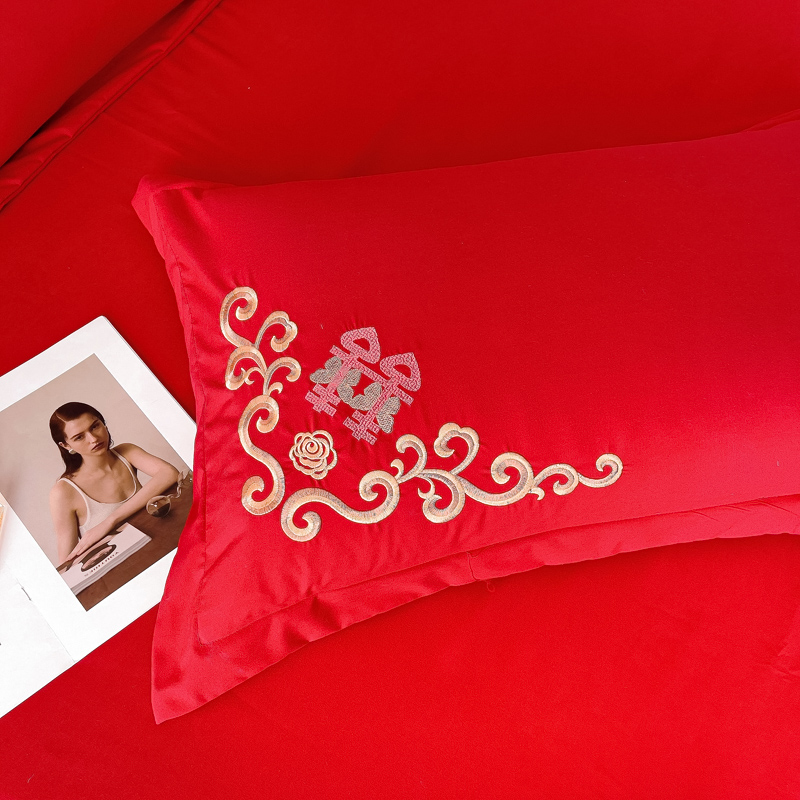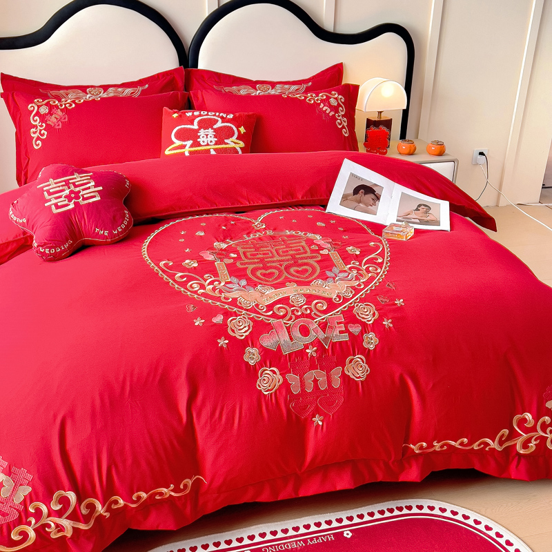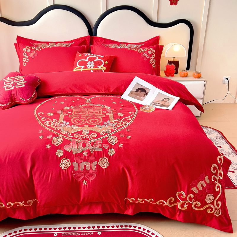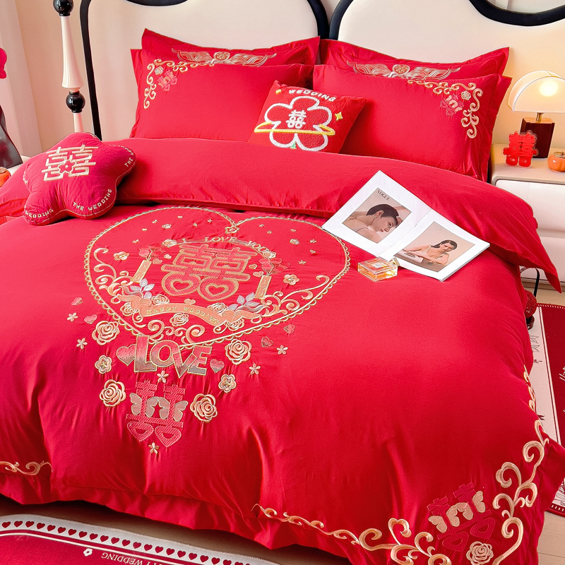 2025新款100支150克双面长绒棉婚庆绣花四件套 喜韵佳缘