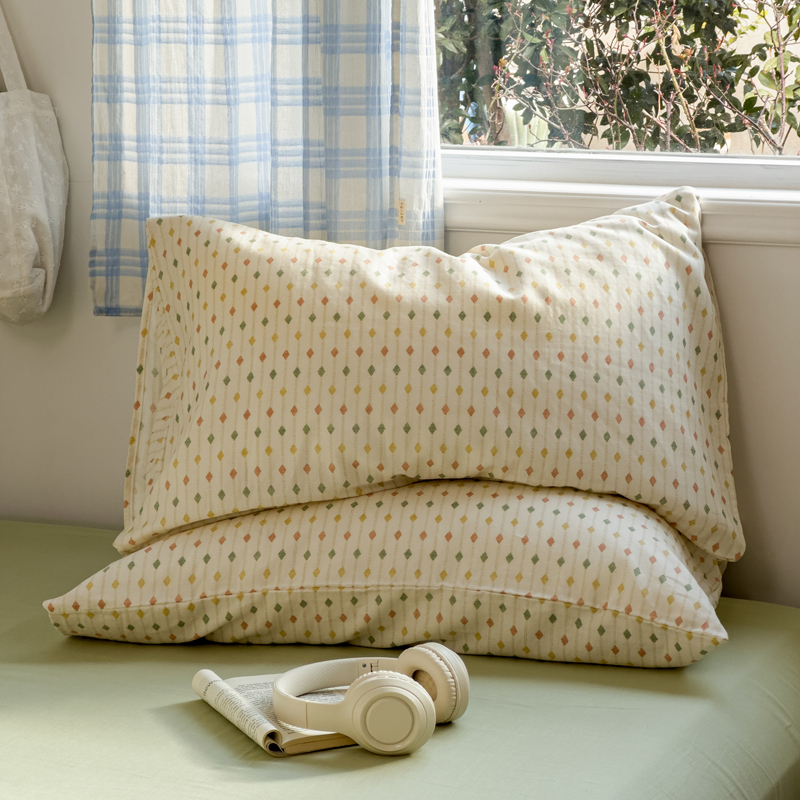 塔塔家居 2025新款全棉纯棉双层纱枕套单品单枕套枕套单件 简约格