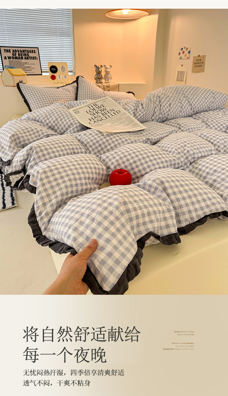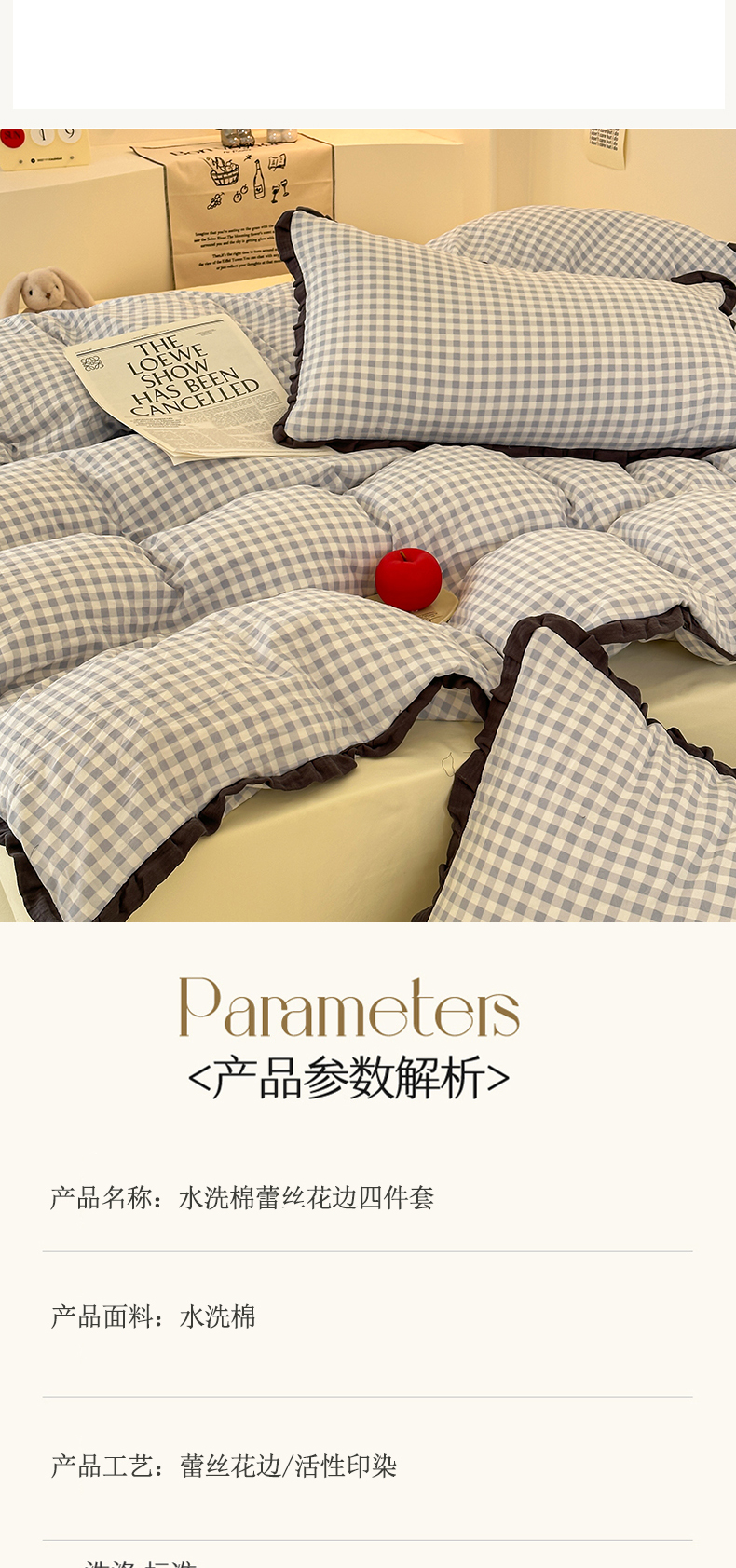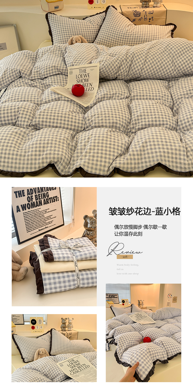 凯洛奇 2025新款1法式小清新蕾丝花边水洗棉四件套-风格二【提供买家秀】 皱皱纱花边-蓝小格