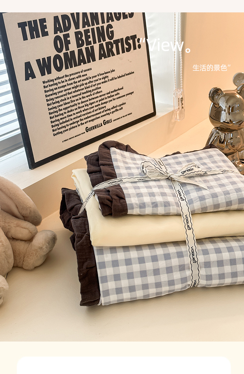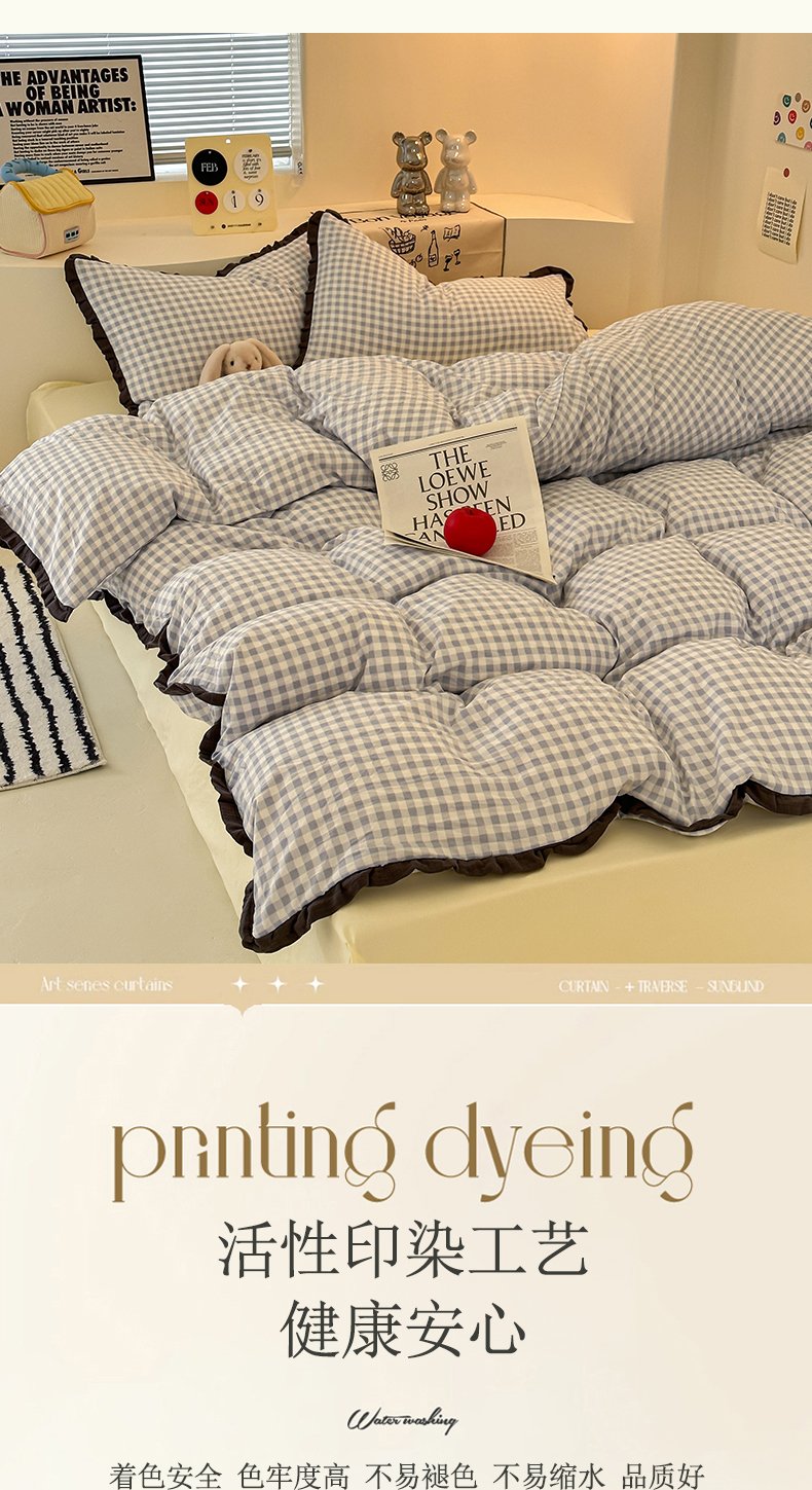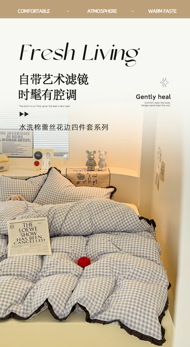 凯洛奇 2025新款1法式小清新蕾丝花边水洗棉四件套-风格二【提供买家秀】 皱皱纱花边-蓝小格