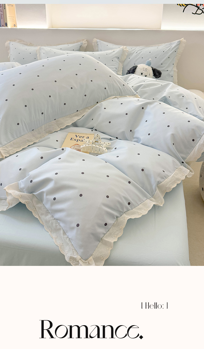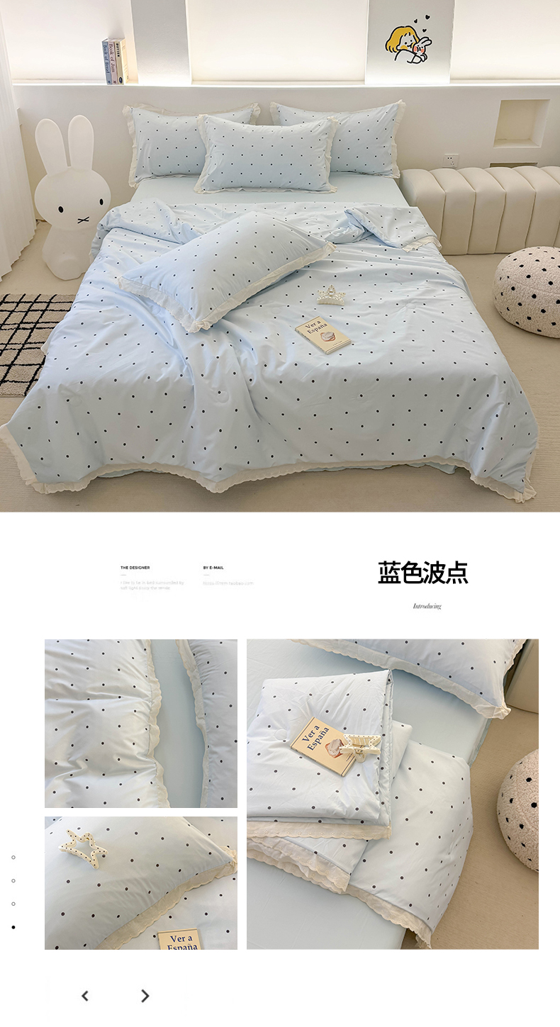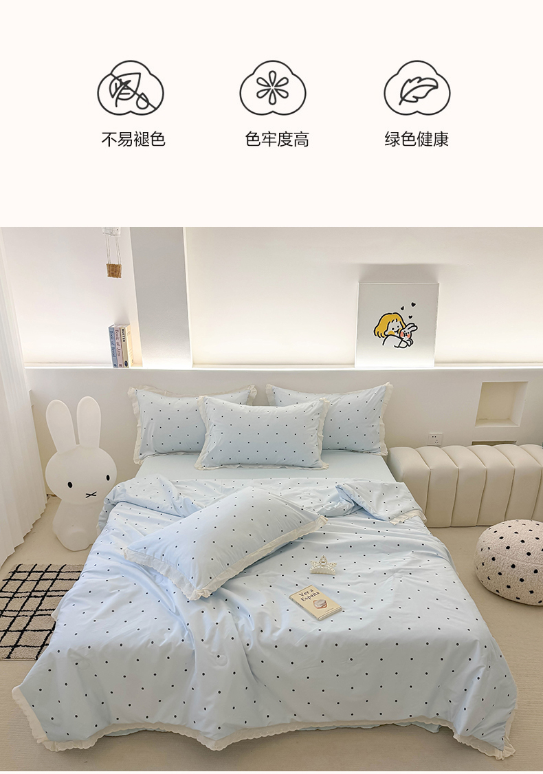 商品名称:吾欢心 2025新款水洗双层纱夏被四件套 蓝色波点