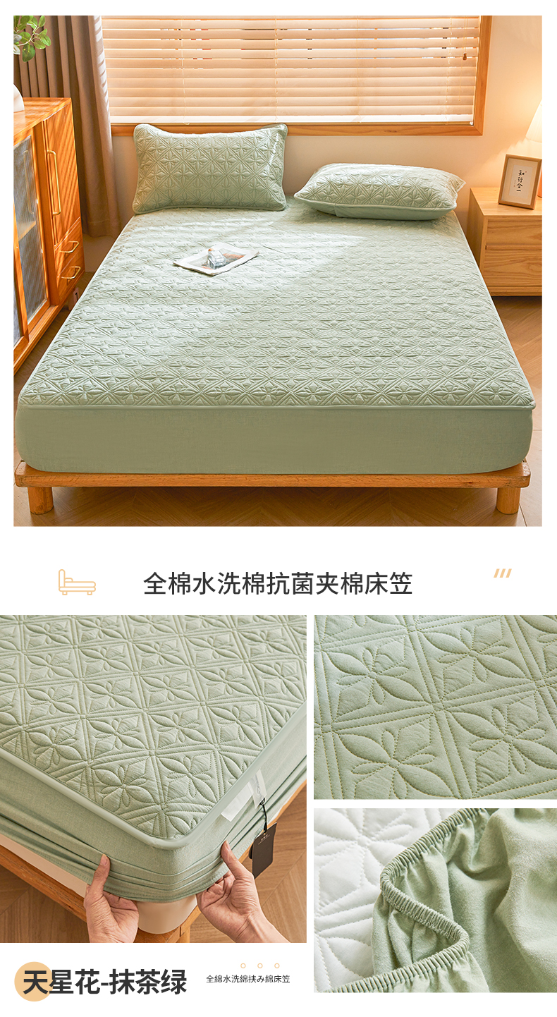 (总)3C 2025全棉蚕丝蛋白夹棉床笠,天星花-抹茶绿,天星花-浅卡其,天星花-天空蓝,天星花-星辰灰,天星花-樱花粉,天星花-云朵白,组合