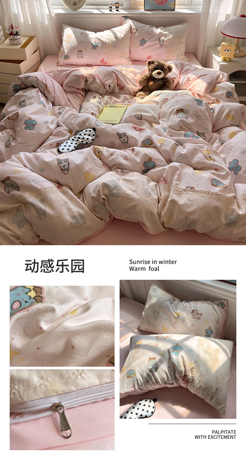 (总)韩都家居 2025新款亲肤舒适韩版温暖牛奶绒四件套-花边款,花园兔兔,蝴蝶结小狗-兰,美乐,蝴蝶结小狗-玉,治愈女孩,奶芙小狗,游园会,韵彩,香草兔,灿烂时光,奶油草莓,小企鹅,猫猫汇,星星猫咪,时尚蝴蝶结,花苏