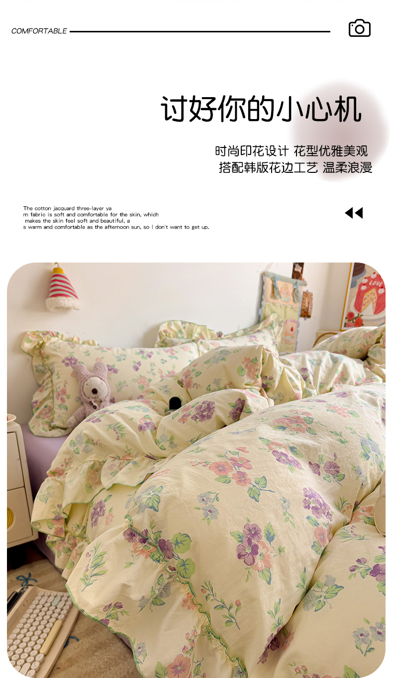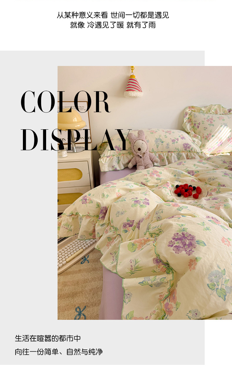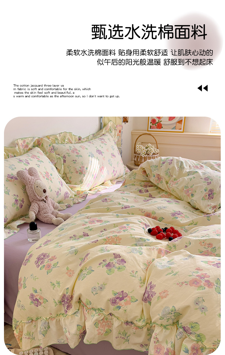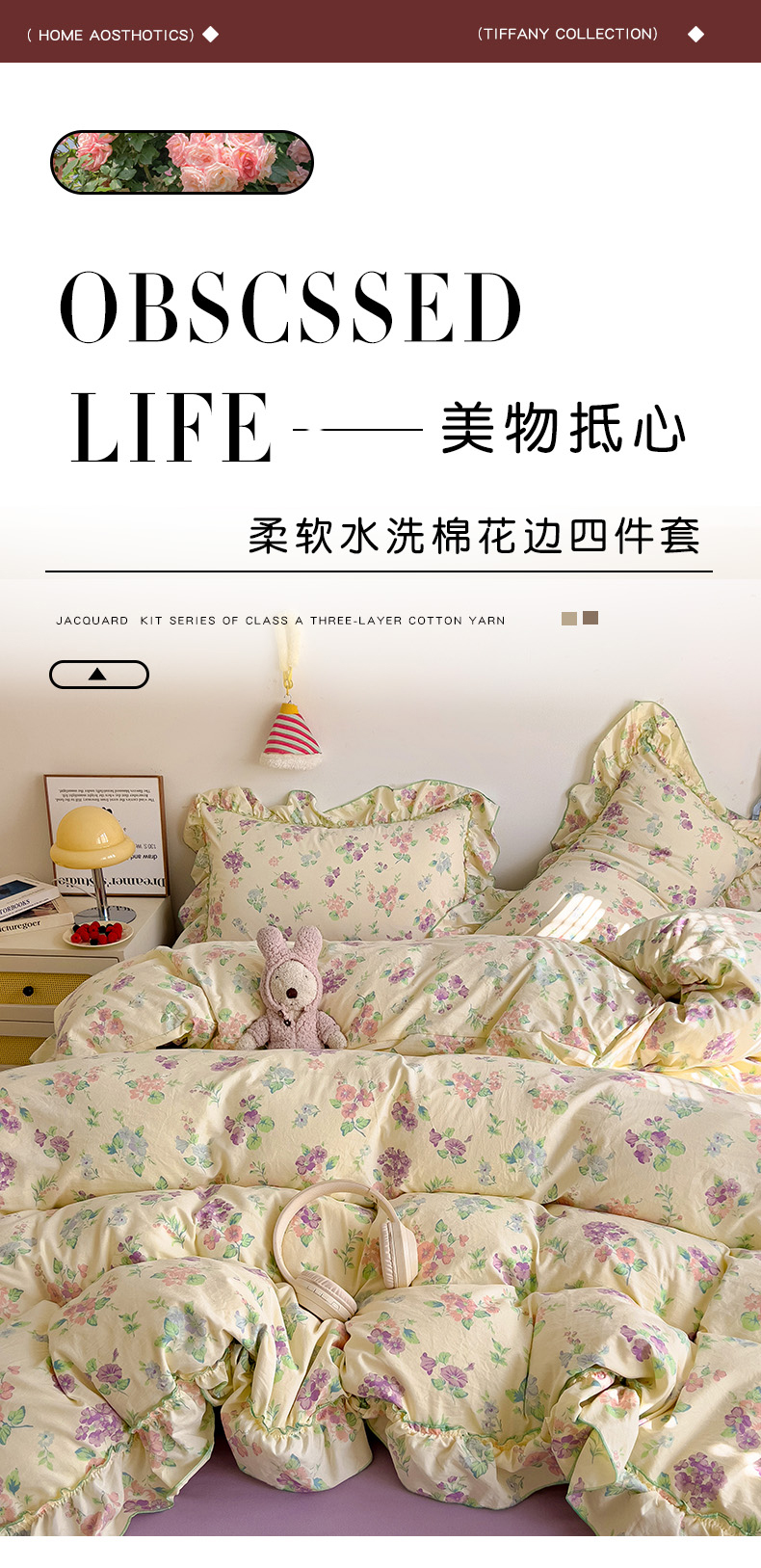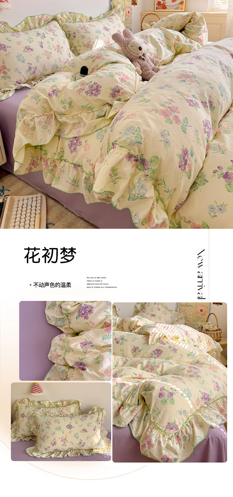 初念 2025新款柔软水洗棉花边四件套【提供买家秀】 花边款-花初梦