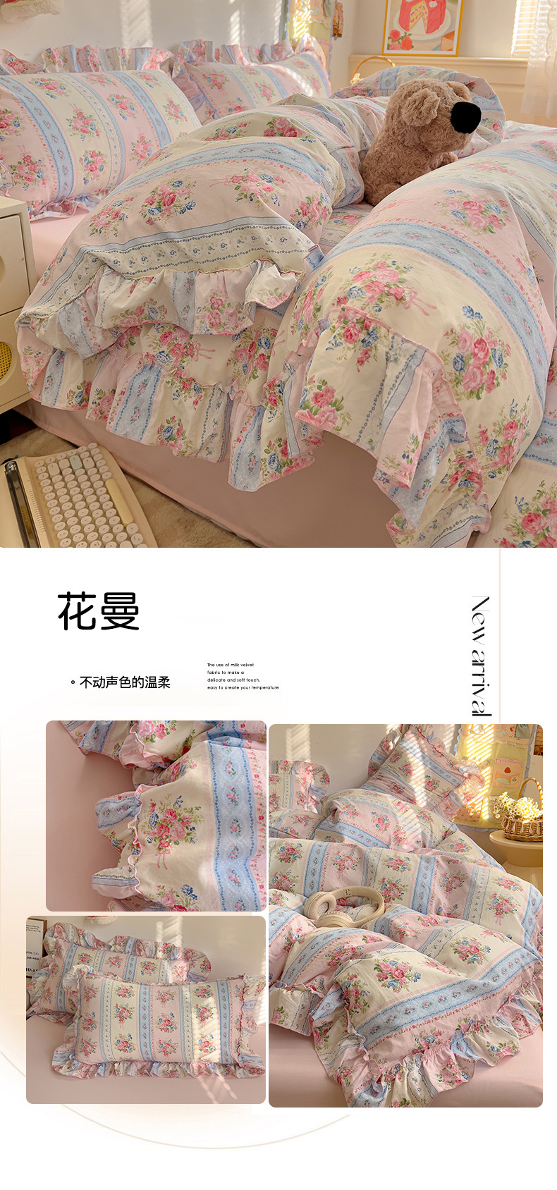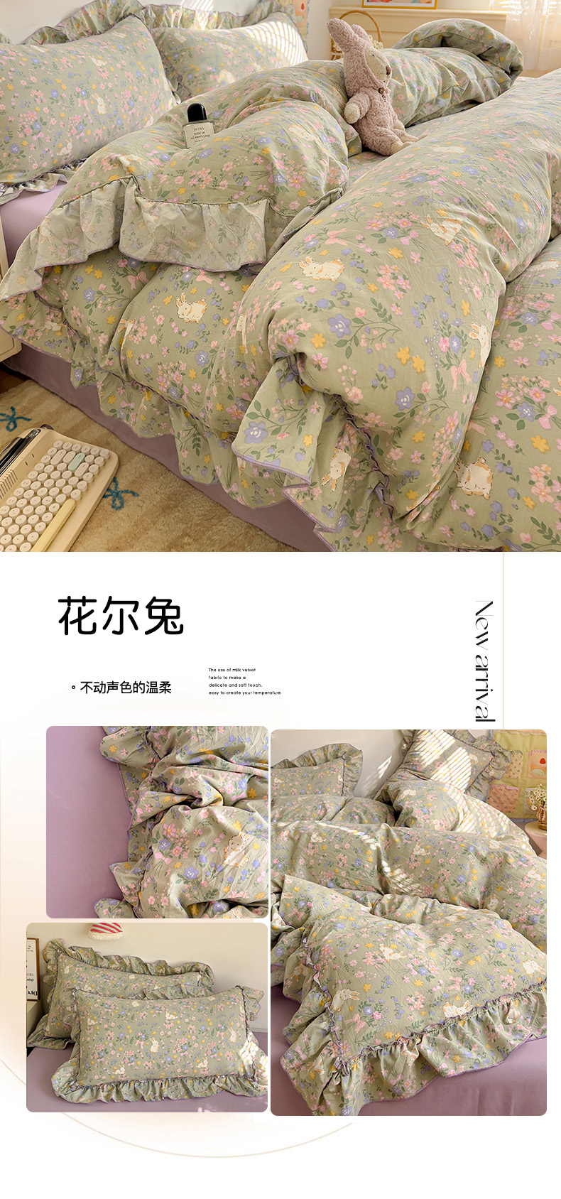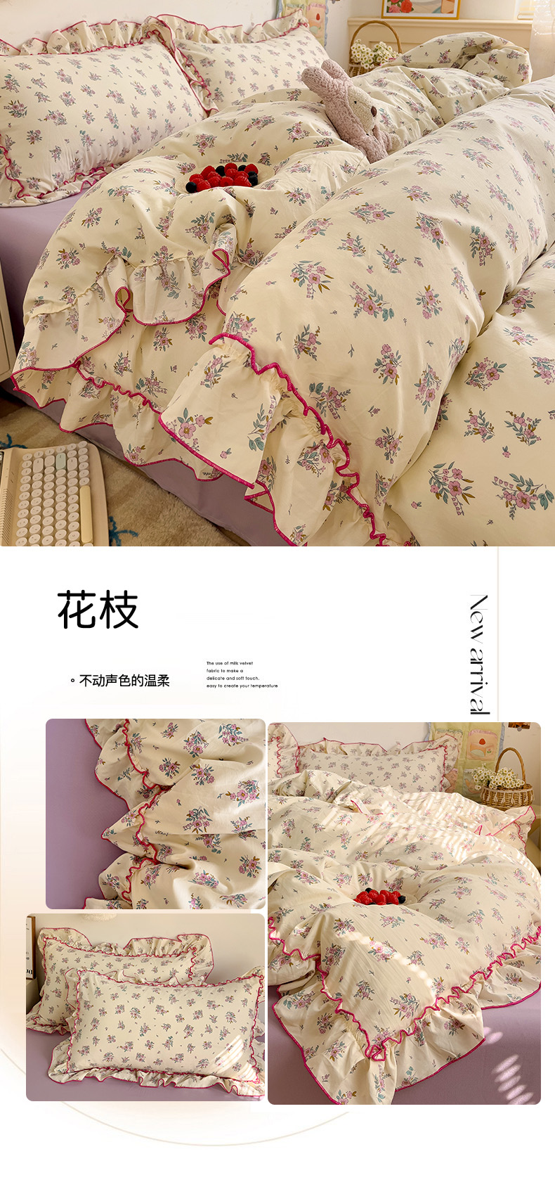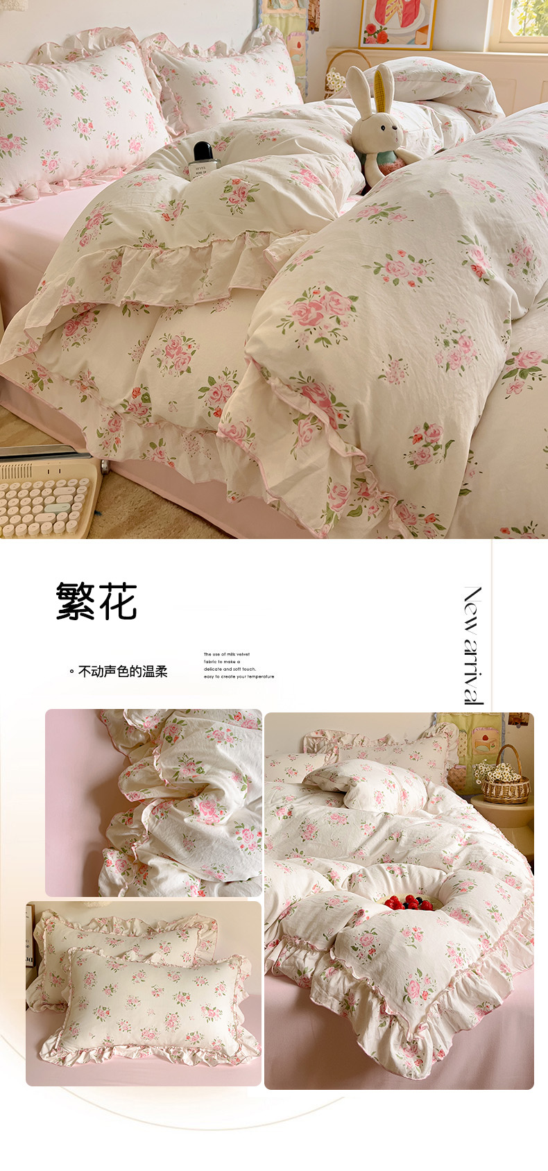 初念 2025新款柔软水洗棉花边四件套【提供买家秀】 花边款-花初梦