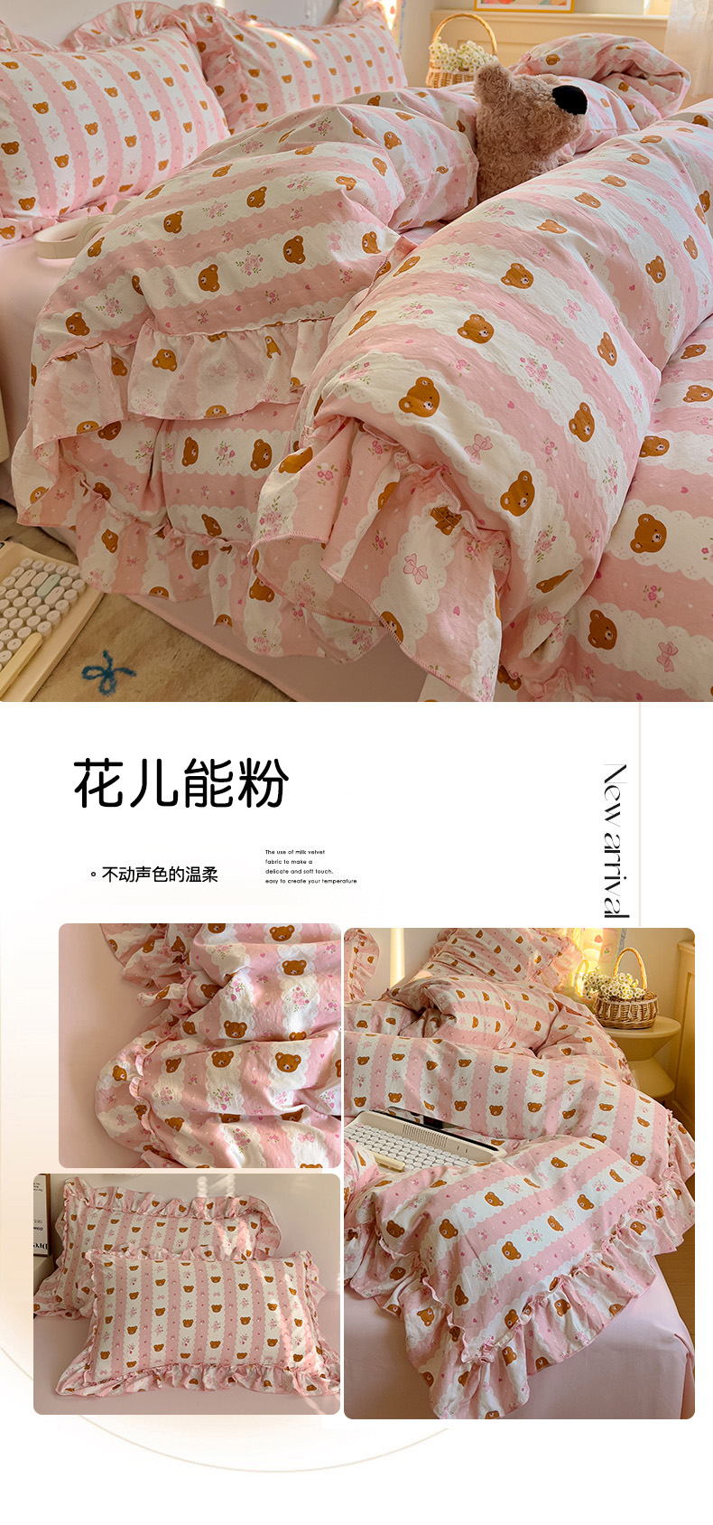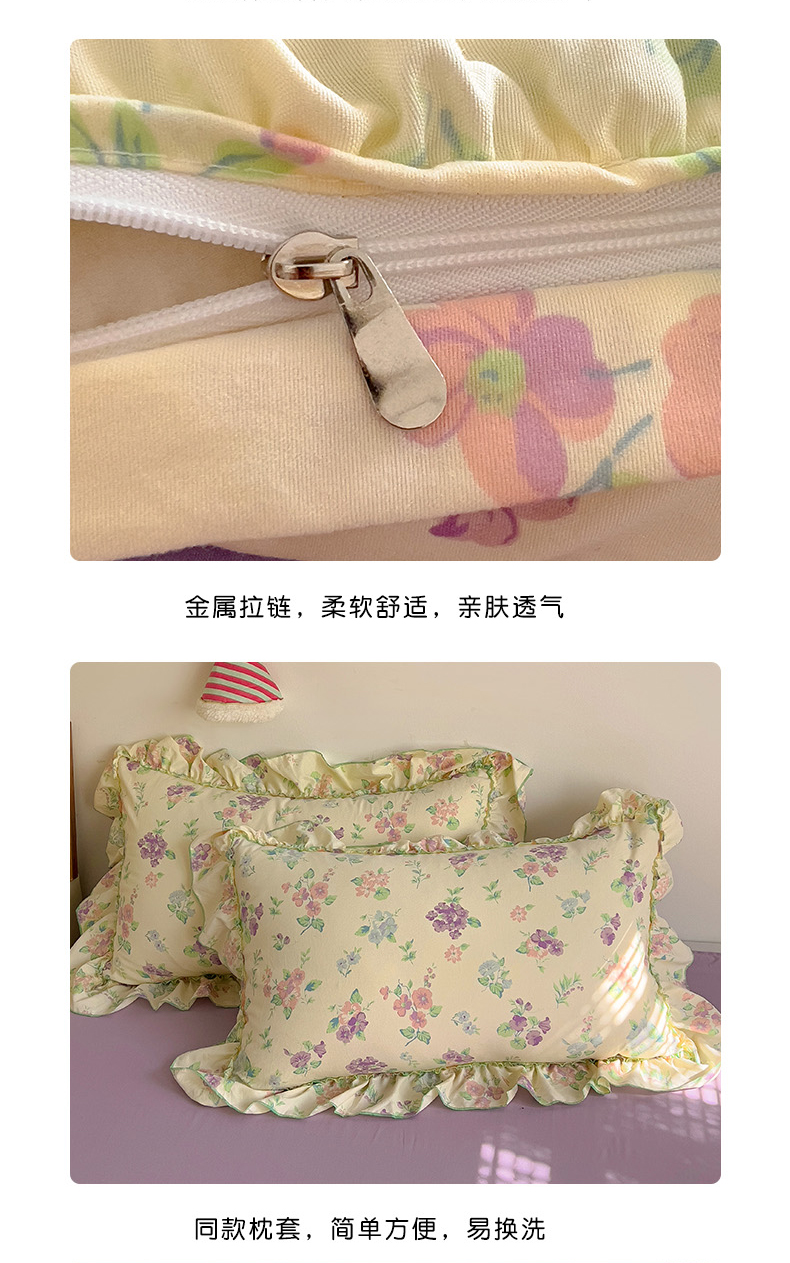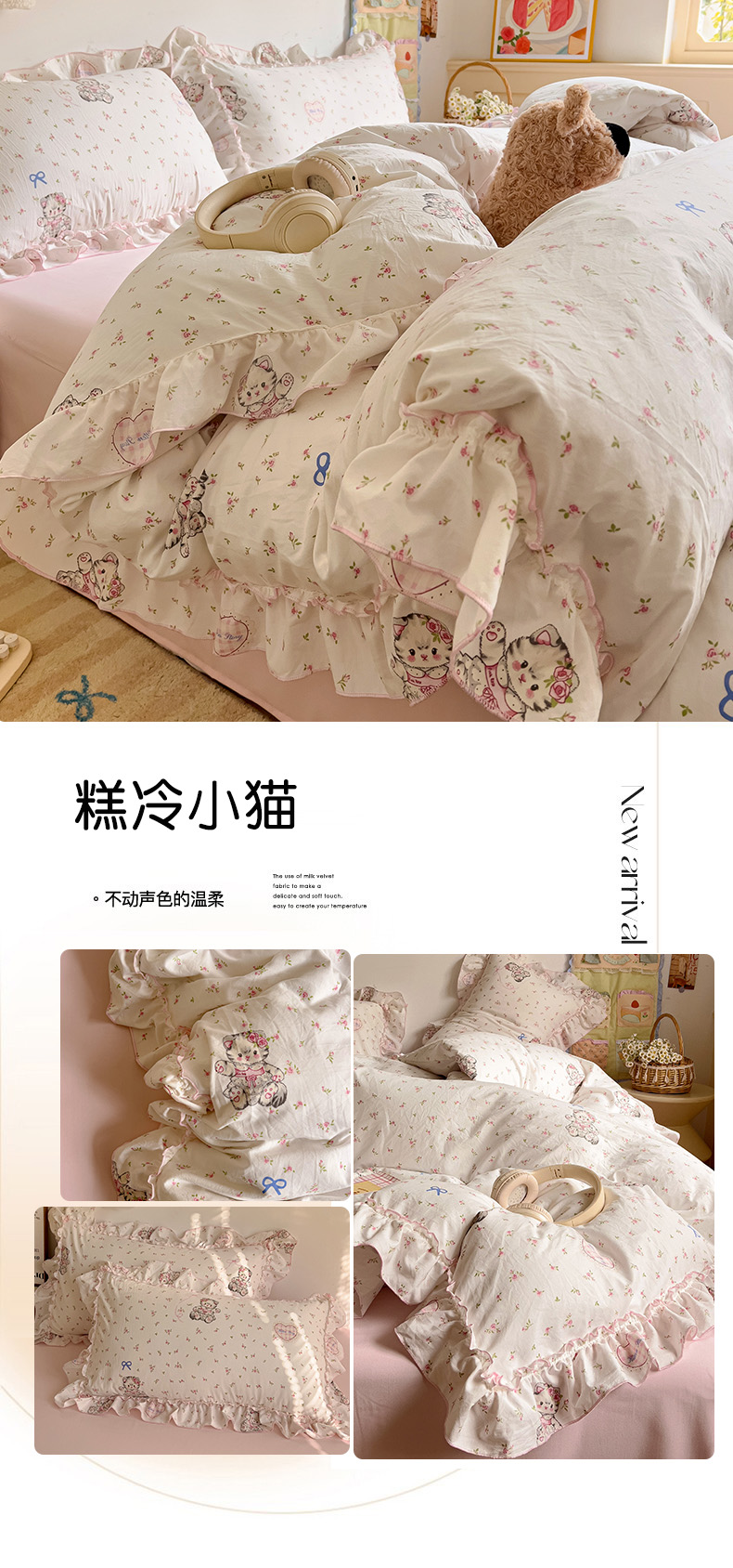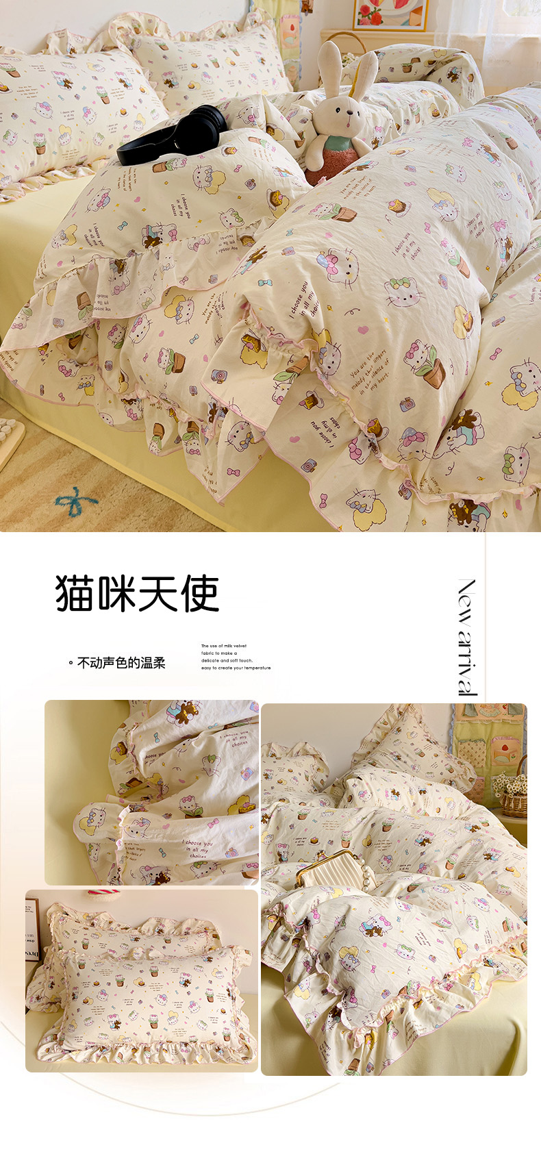 初念 2025新款柔软水洗棉花边四件套【提供买家秀】 花边款-花初梦