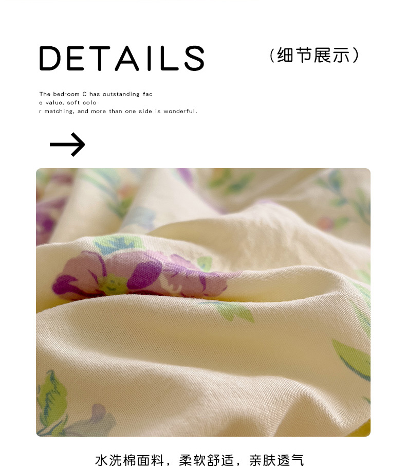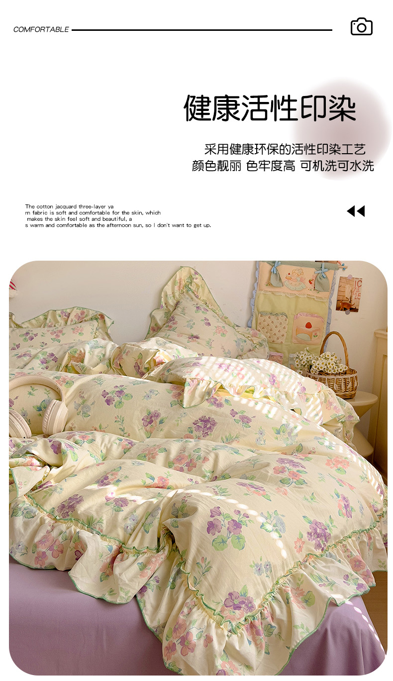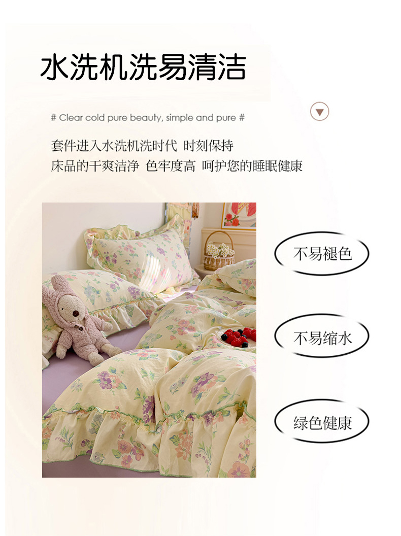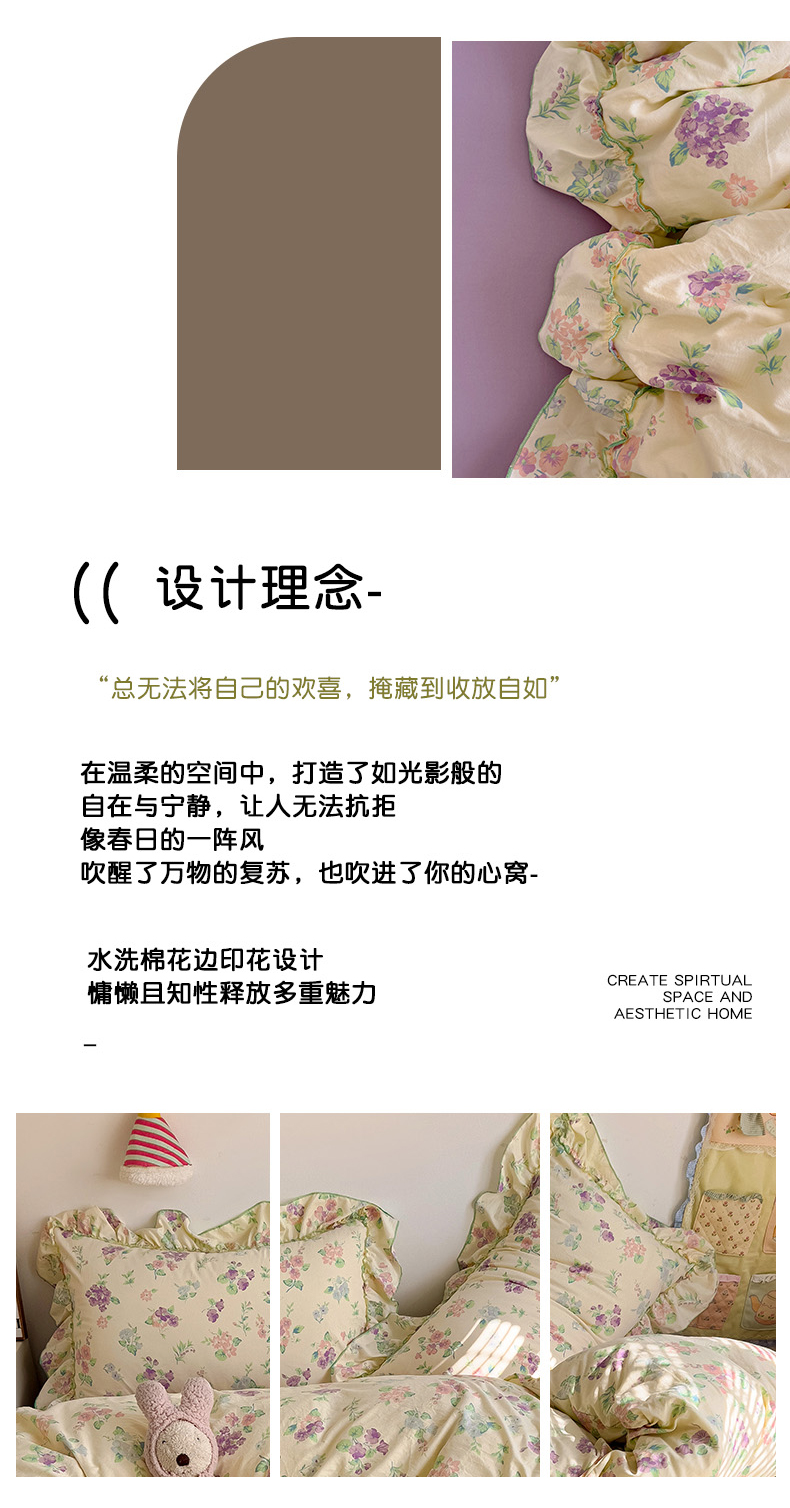 商品名称:初念 2025新款柔软水洗棉花边四件套【提供买家秀】 花边款-花初梦