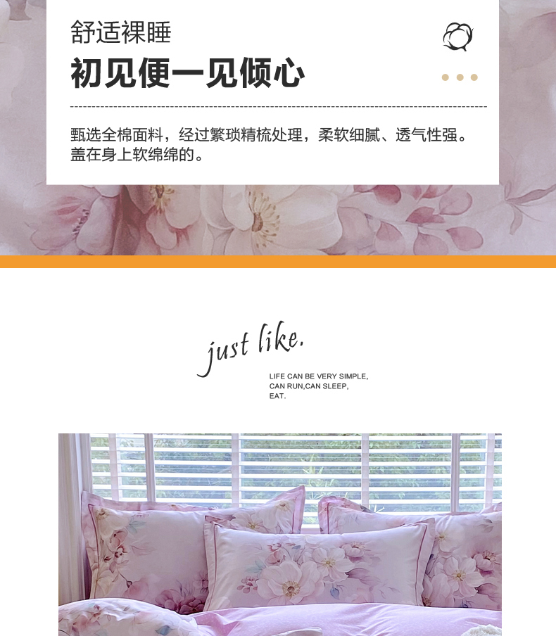 星期三 2025年4月新款铂金全棉纯棉13372四件套 加微信有会员价 橙日幽香