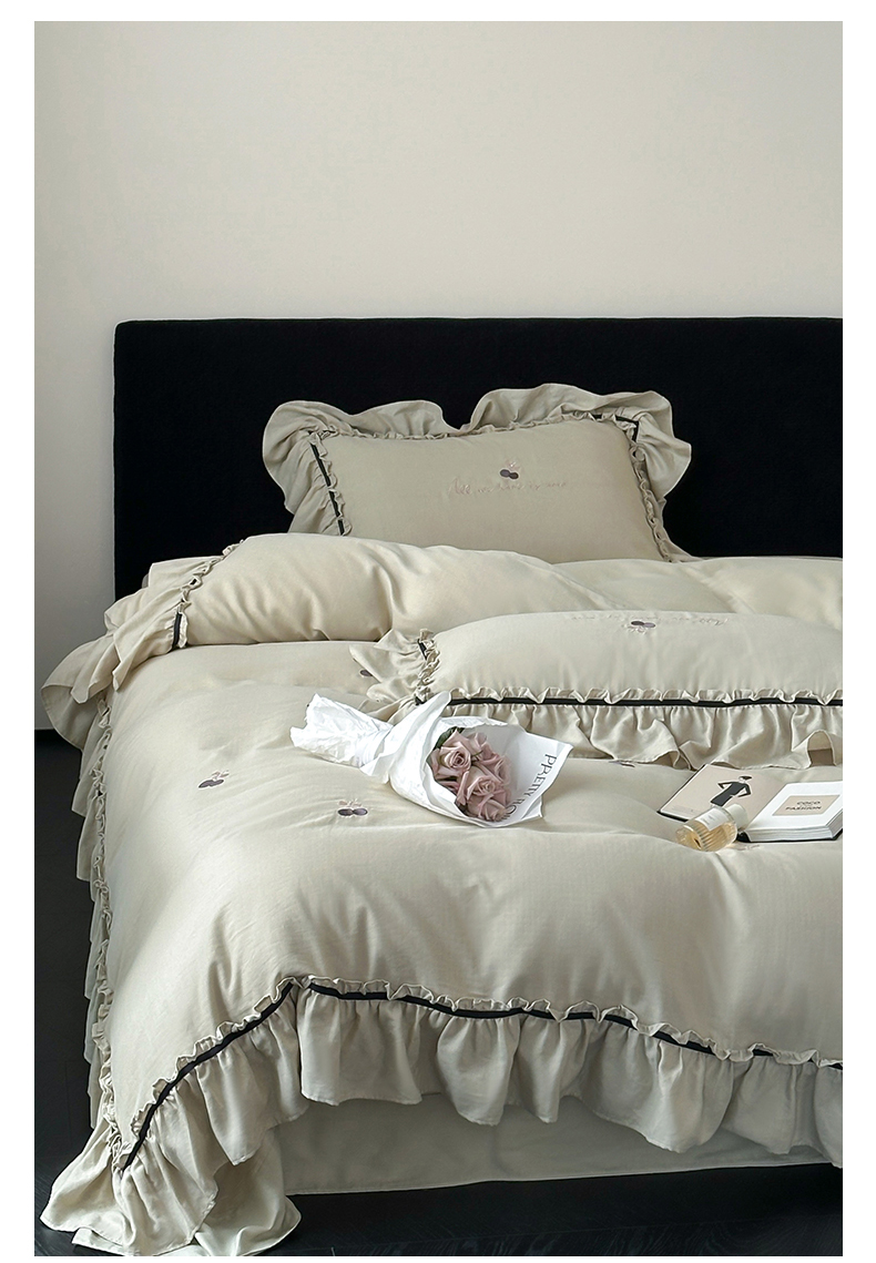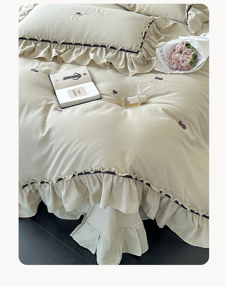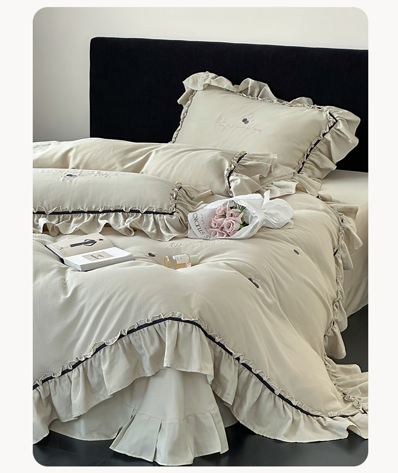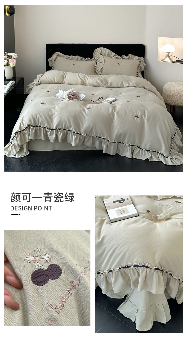 商品名称:名品优仓 2025新款纯棉水洗棉双层纱提花韩版花边四件套-颜可 颜可一青瓷绿