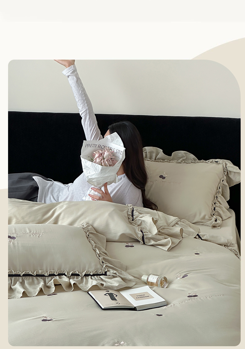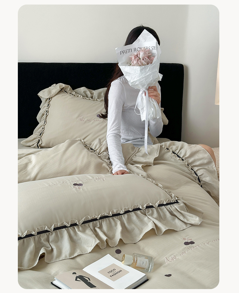 (总)名品优仓2023新款毛巾绣撞色荷叶边四件套,拾光兔,铃兰花开,爱丽兔,太阳花清爽绿,太阳花芝芝奶绿,兔然暴富