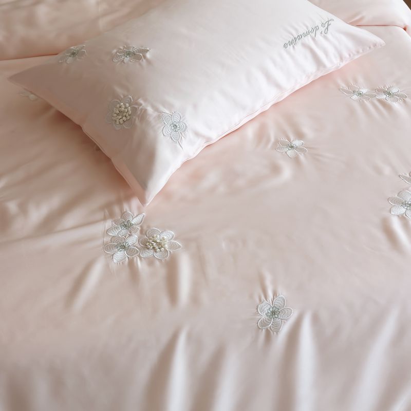 商品名称:初拾 2025新款60s天丝棉超细旦立体绣花四件套-仙本那 仙本那-浮玉白