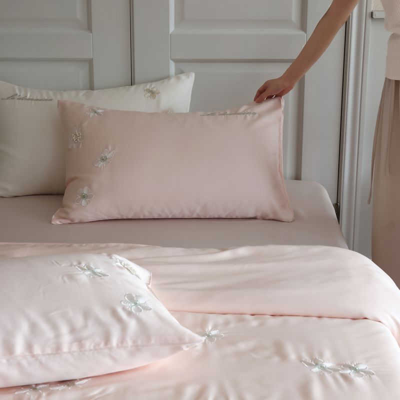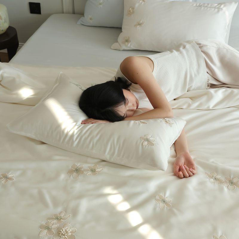 初拾 2025新款60s天丝棉超细旦立体绣花四件套-仙本那 仙本那-浮玉白