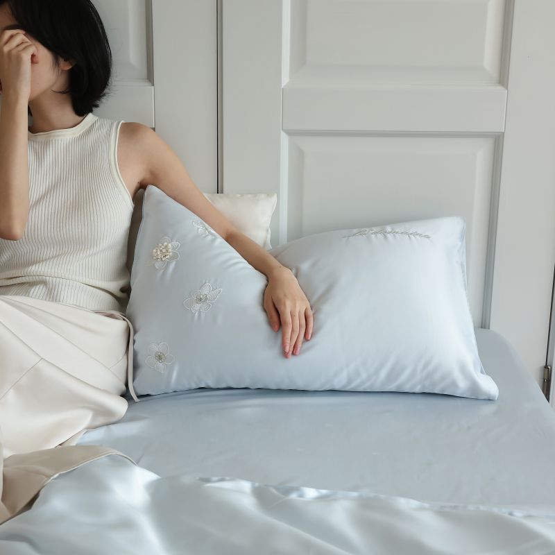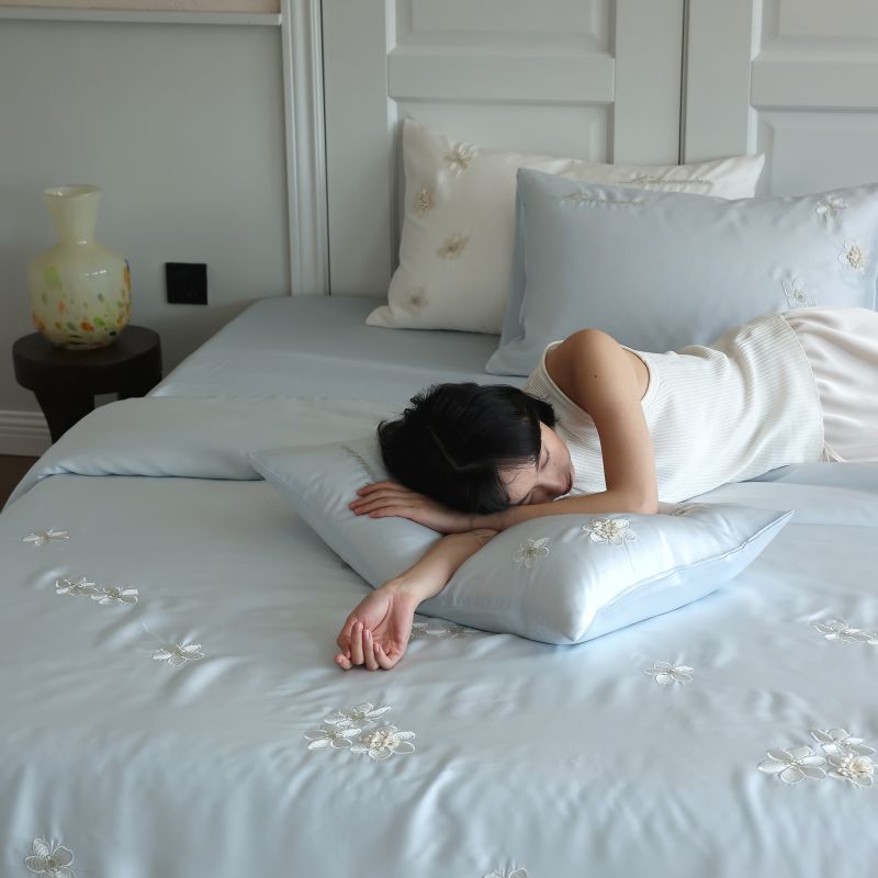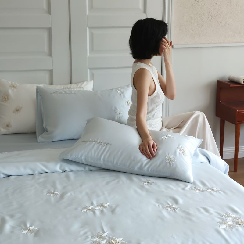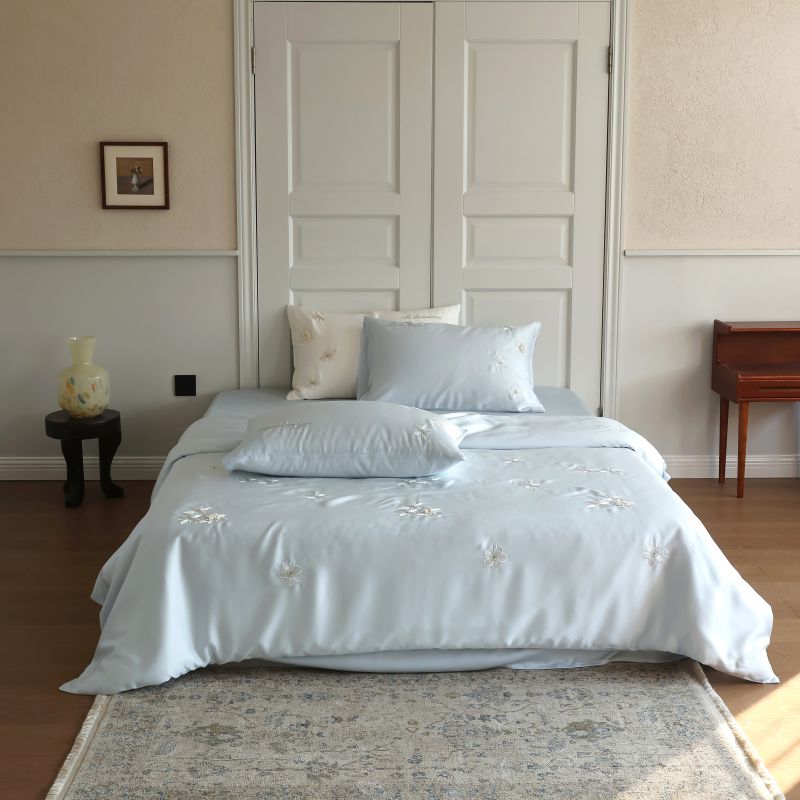 (总)初拾 2025新款100s双股澳棉刺绣四件套-赫拉公主(棉),棉 赫拉公主-海边蓝,棉 赫拉公主-奶油粉