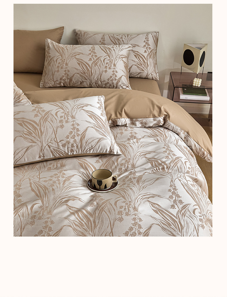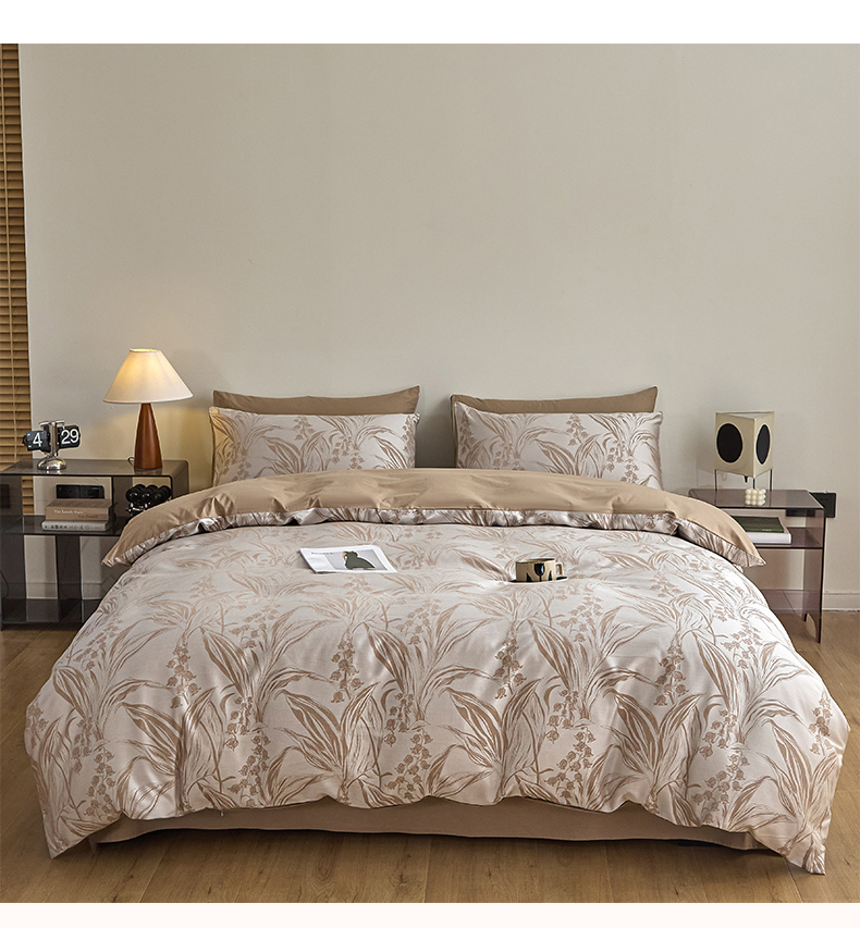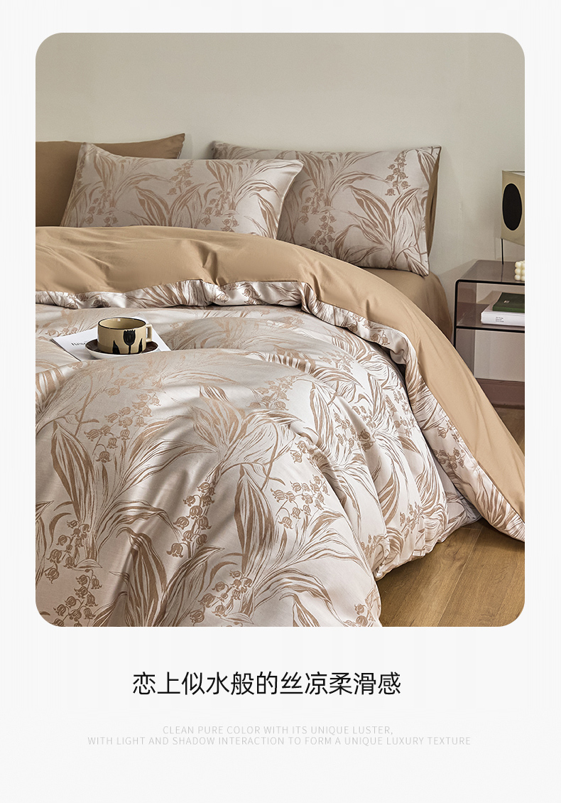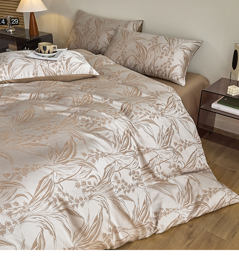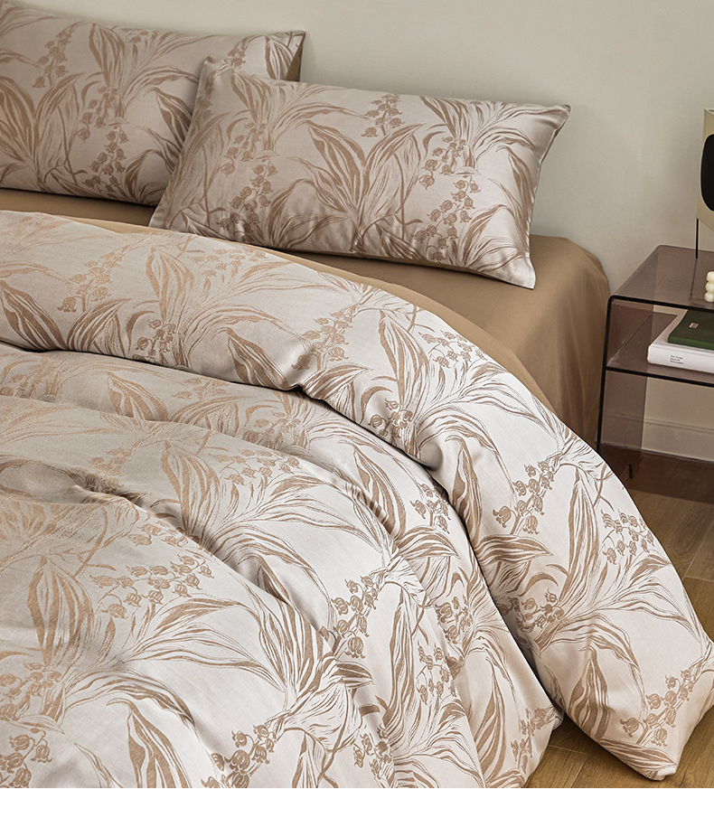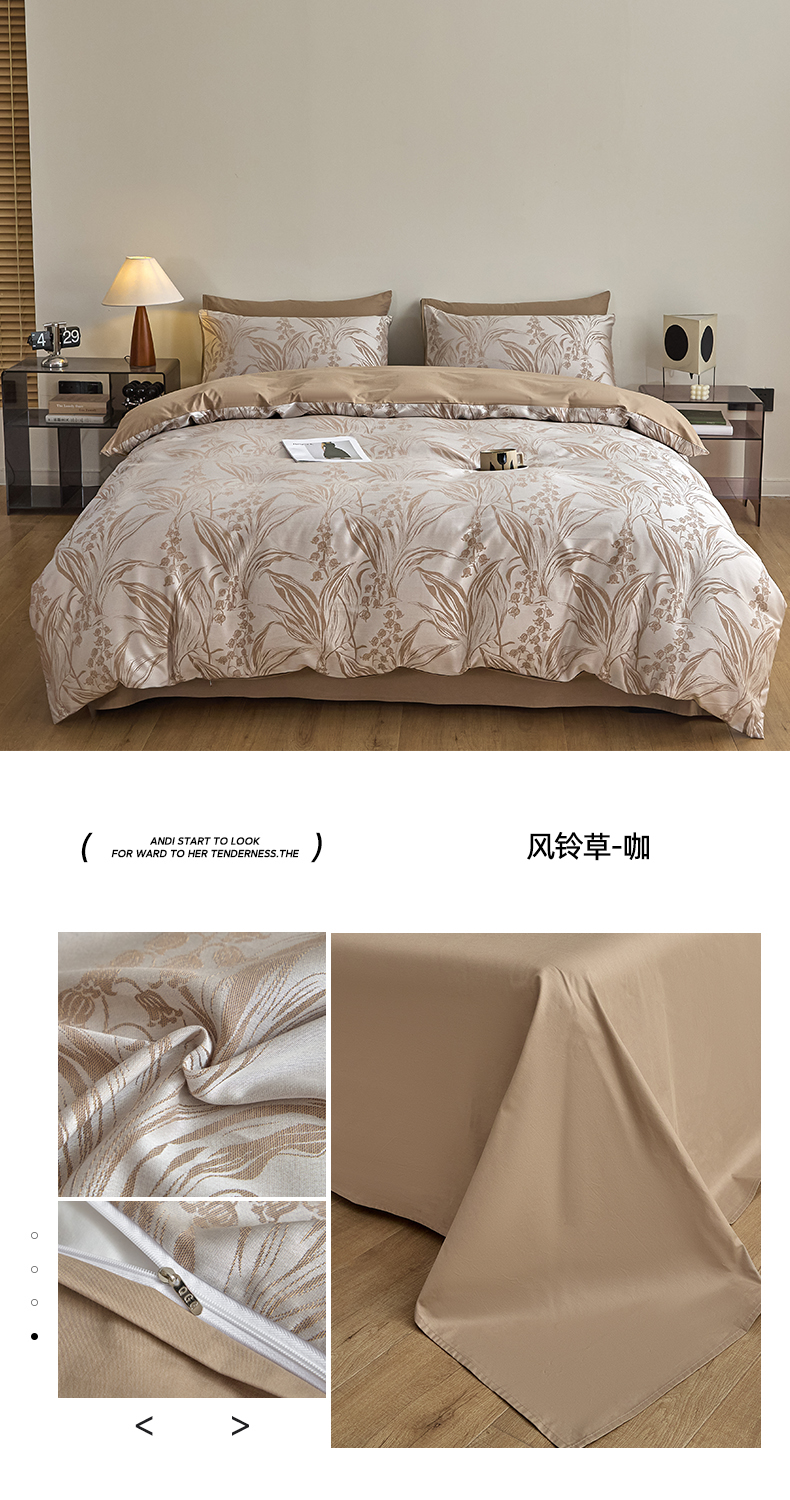 商品名称:琪格格纺织 2025新款色织天丝棉提花四件套 风铃草-咖