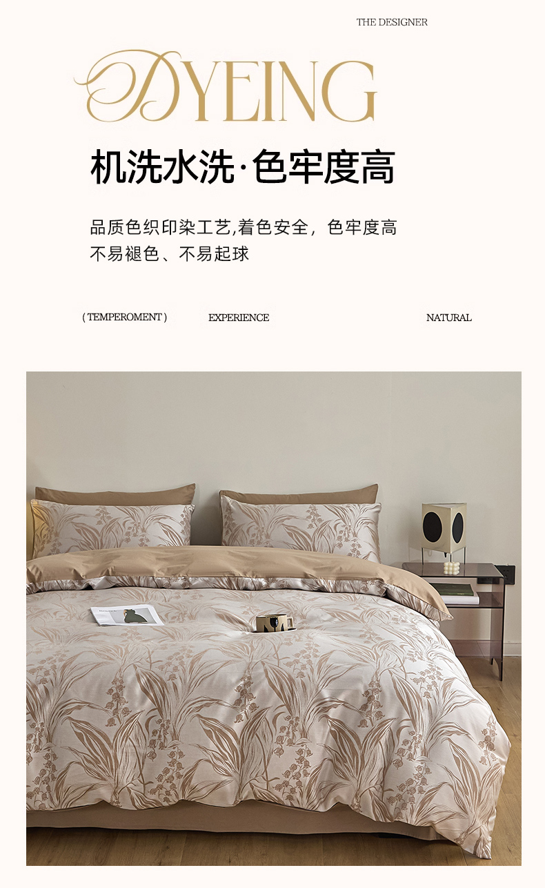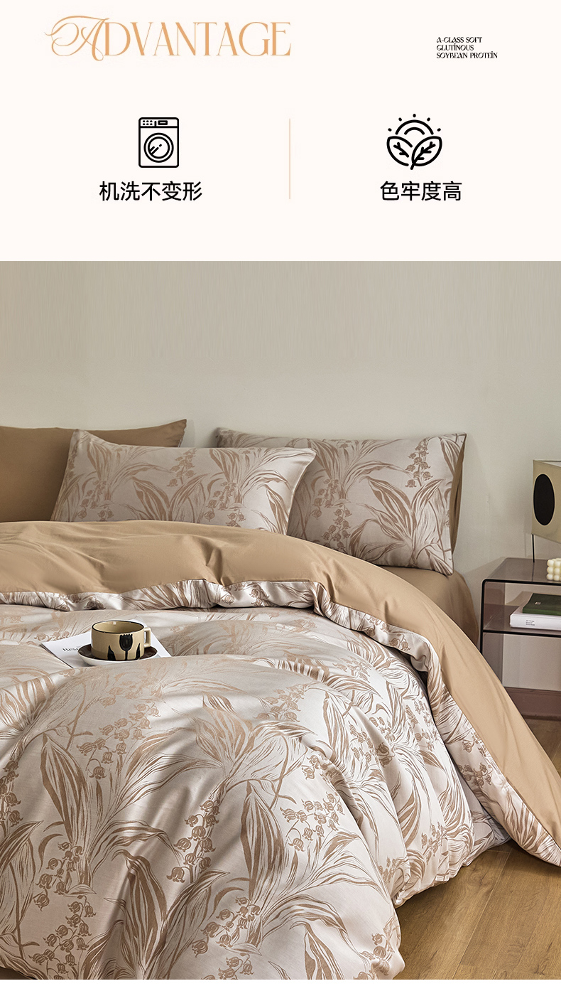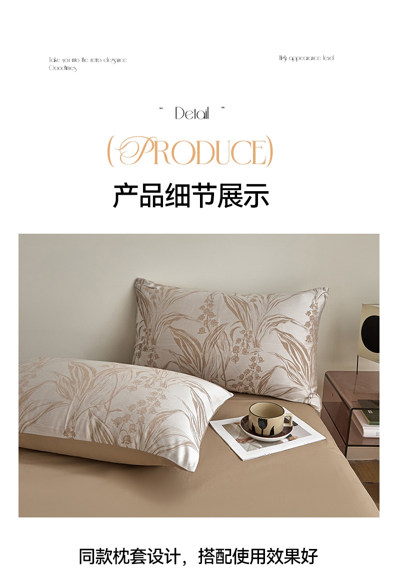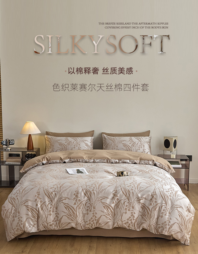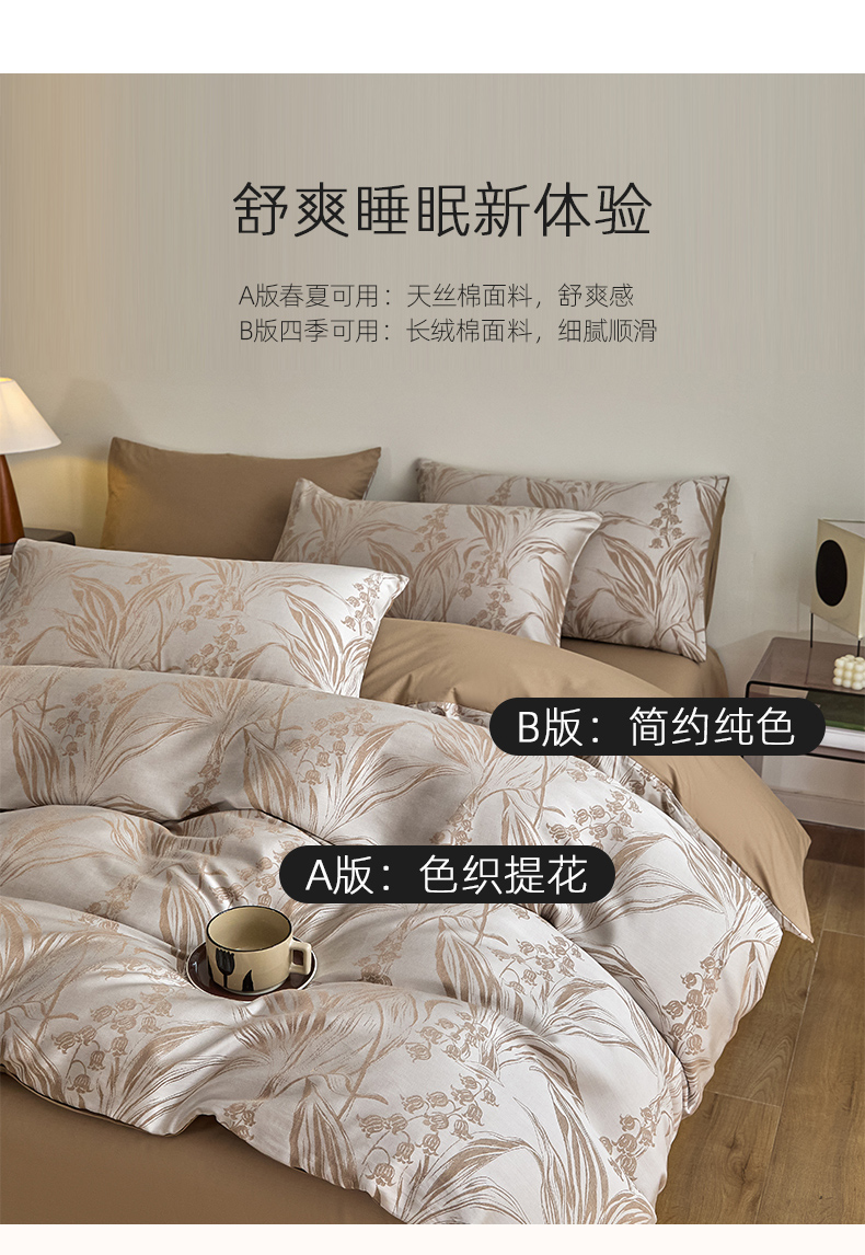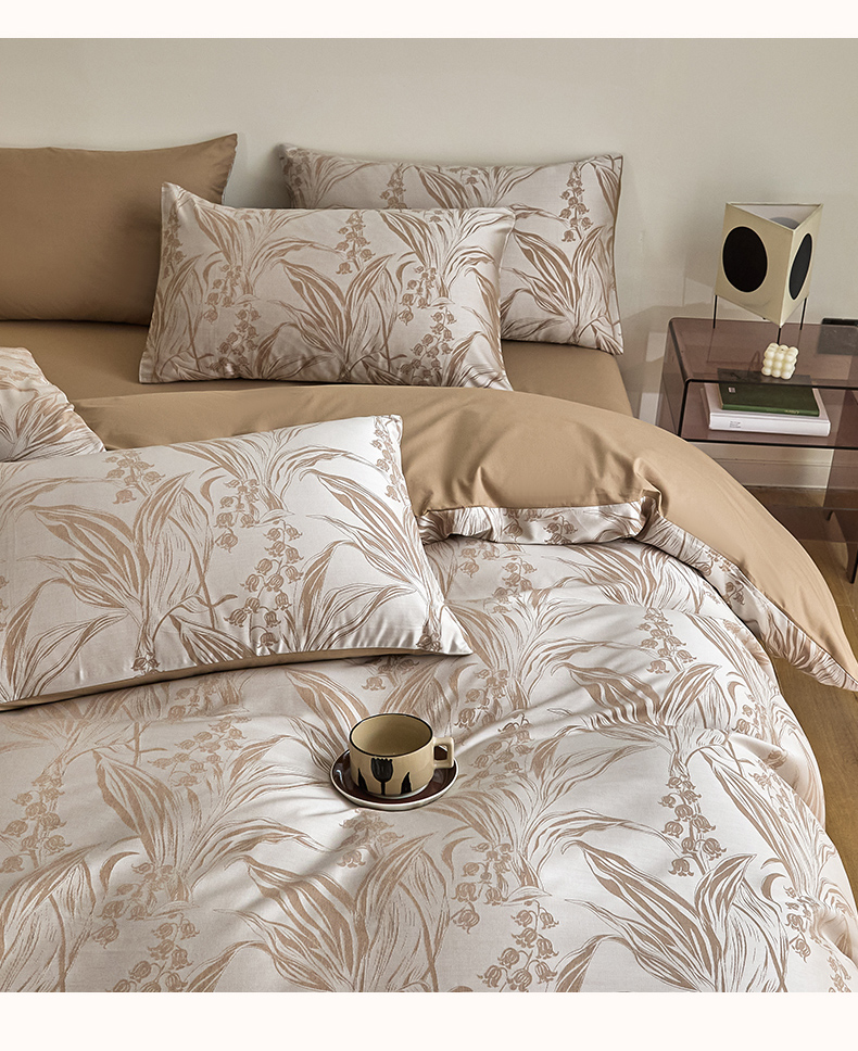 商品名称:琪格格纺织 2025新款色织天丝棉提花四件套 风铃草-咖