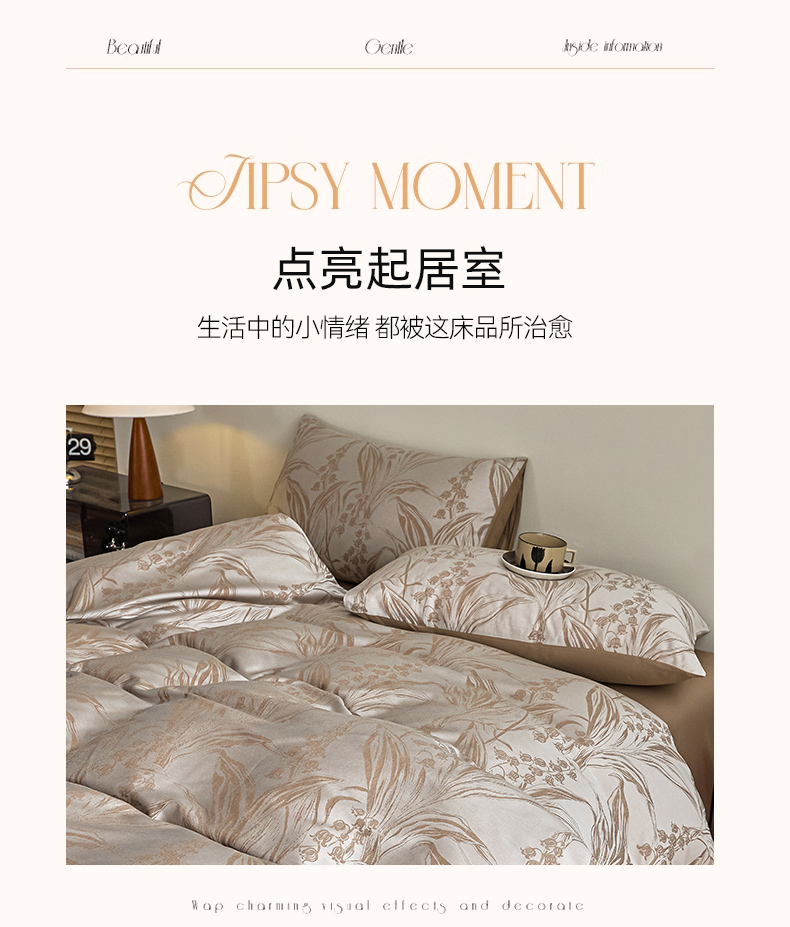 琪格格纺织 2025新款色织天丝棉提花四件套 风铃草-咖