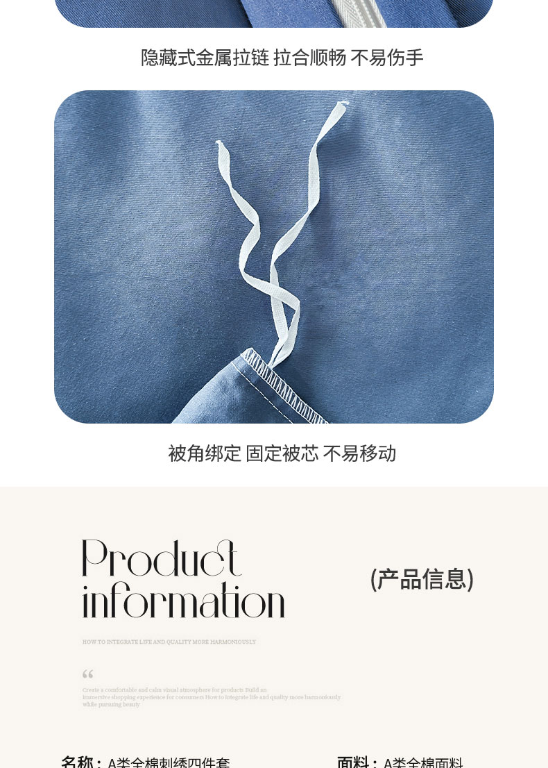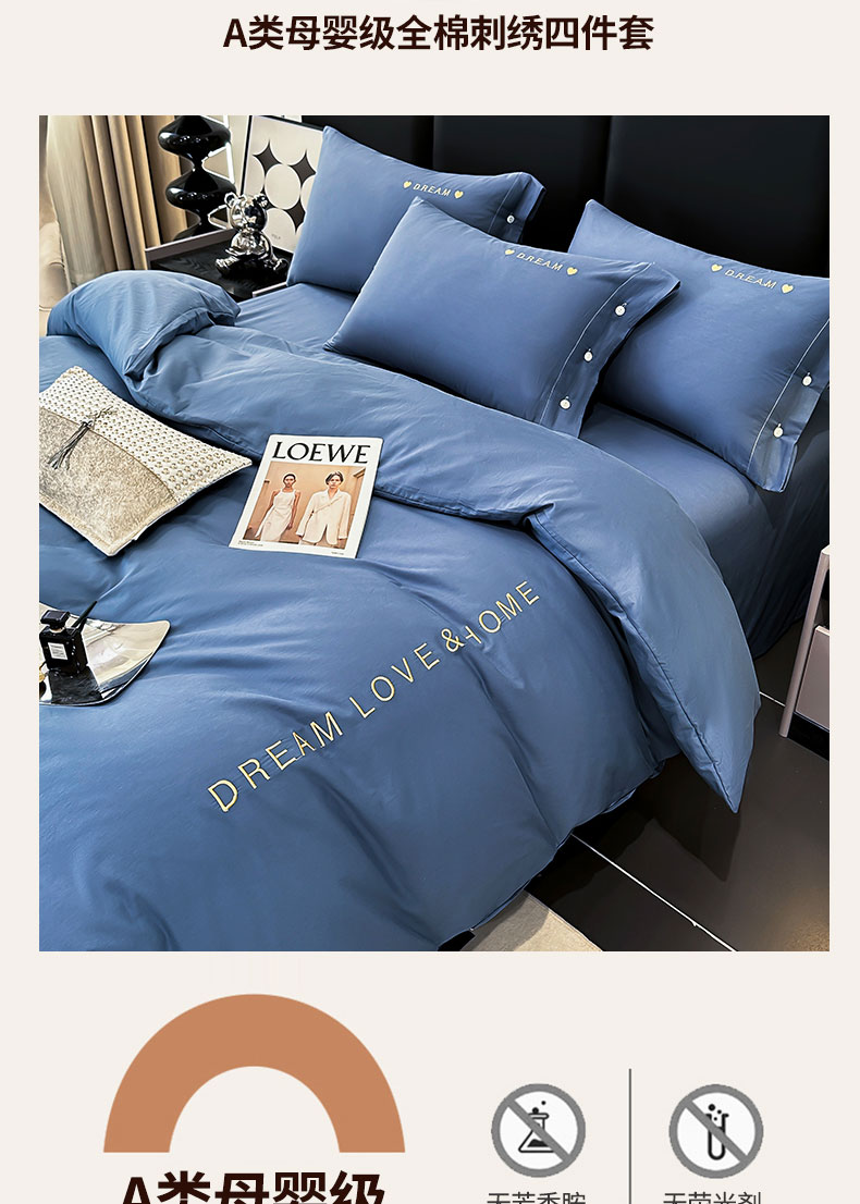 当前位置: 91家纺网 > 商品网购 > 床品套件 > 四件套 > 全棉普通四件套 > 宇彬家纺 2025直播热款13374全棉母婴级纽扣款压线纯色刺绣四件套全棉贡缎新疆长绒棉字母款轻奢 纽扣-宾利蓝