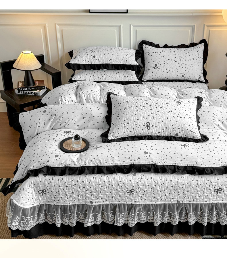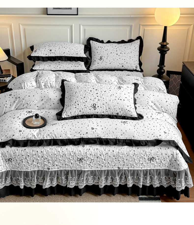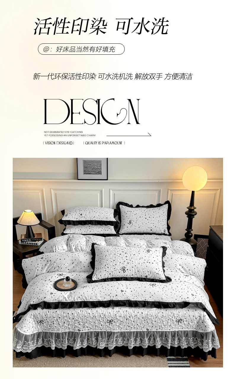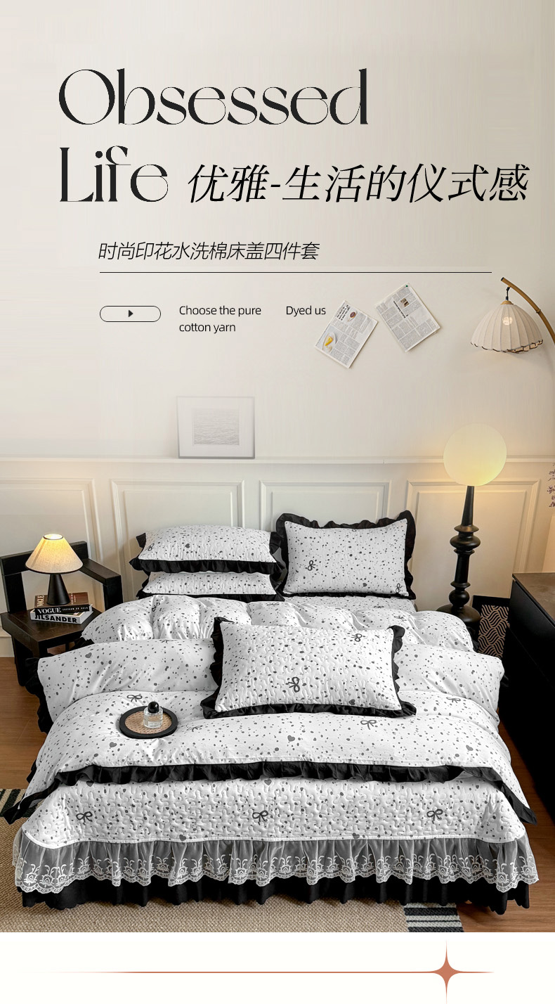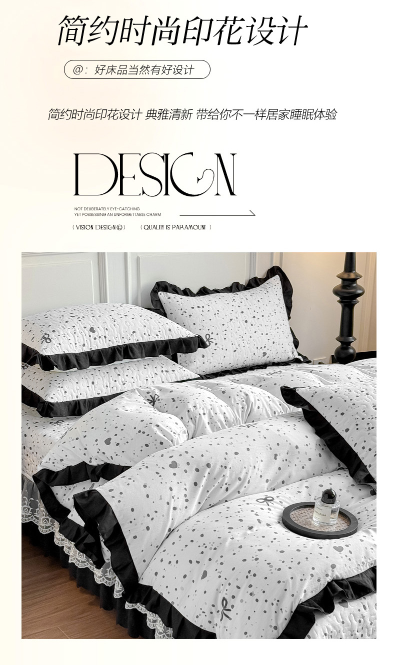 商品名称:绣女坊 2025新款时尚印花水洗棉被套款床盖四件套-赫本风 赫本风-蝴蝶结