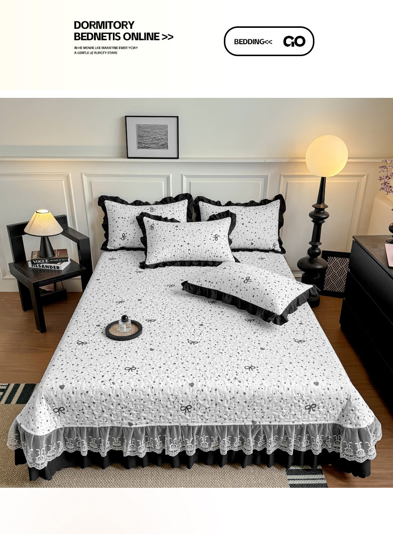 绣女坊 2025新款时尚印花水洗棉被套款床盖四件套-赫本风 赫本风-蝴蝶结